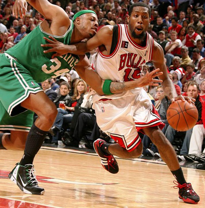 Einvígi Boston Celtics og Chicago Bulls í fyrstu umferð úrslitakeppninnar í NBA er fyrir löngu orðið sígilt og í nótt þurftu liðin þrjár framlengingar til að skera úr um sigurvegarann í sjötta leiknum í Chicago. Það fór svo að lokum að heimamenn í Chicago höfðu sigur og jöfnuðu þar með metin í 3-3 í einvíginu með 128-127 sigri í maraþonleik. Oddaleikurinn verður í Boston annað kvöld. John Salmons skoraði 35 stig fyrir Chicago og nýliðinn Derrick Rose skoraði 28 stig og varði síðasta skot leiksins frá Rajon Rondo sem hefði tryggt Boston farseðilinn í næstu umferð ef það hefði farið niður. Ray Allen setti persónulegt met með því að skora 51 stig og skora níu þrista fyrir Boston, en það dugði ekki til. Þrír af byrjunarliðsmönnum Boston, þar á meðal Paul Pierce, voru komnir af velli með sex villur í lokin. Af leikjunum sex til þessa í einvíginu hefur aðeins þriðji leikurinn unnist örugglega og alls hafa sjö framlengingar litið dagsins ljós í einvíginu. NBA metið var fjórar framlengingar í einni seríu. "Þetta er algjör geggjun, en það er ekki hægt annað en að hafa gaman af þessu," sagði pollrólegur nýliði Chicago, Derrick Rose. "Fólk mun tala um þessa seríu í mörg ár," sagði Joakim Noah, leikmaður Chicago. Paul Pierce hjá Chicago tók í sama streng. "Ég veit eiginlega ekki hvað ég á að segja um þetta einvígi. Það hefur verið stórkostlegt," sagði hann. Ray Allen var þremur stigum frá félagsmeti Boston yfir flest stig í leik í úrslitakeppni. John Havlicek skoraði 54 stig í leik árið 1973. Oddaleikurinn í einvíginu verður í Boston á annað kvöld og verður sýndur beint á Stöð 2 Sport á miðnætti. Loksins loksins hjá Houston Houston Rockets náði loksins að hrista af sér álögin sem hafa verið á liðinu undanfarin ár og tryggja sér sæti í annari umferð úrslitakeppninnar í fyrsta skipti síðan árið 1997 þegar liðið lagði Portland 92-76 á heimavelli. Houston vann einvígið 4-2. Ron Artest skoraði 27 stig fyrir Houston og Yao Ming skoraði 17 stig. Þetta var í fyrsta skipti sem Kínverjinn stóri vinnur seríu í úrslitakeppni síðan hann kom til liðsins árið 2002. LaMarcus Aldrige skoraði 26 stig fyrir Portland og Brandon Roy 22. Orlando áfram Orlando kláraði einvígi sitt gegn Philadelphia með öruggum 114-89 útisigri á Philadelphia og vann því samanlagt 4-2. Orlando spilaði án Dwight Howard í leiknum en það kom ekki að sök. Rashard Lewis skoraði 29 stig fyrir Orlando og Rafer Alston var með 21 stig og 10 stoðsendingar. Andre Miller var bestur hjá Philadelphia með 24 stig og 7 stoðsendingar.