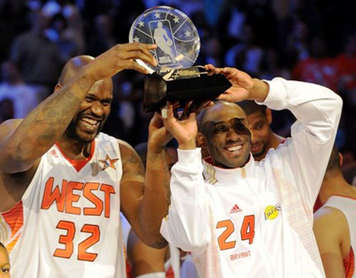 Fyrrum liðsfélagarnir Shaquille O´Neal og Kobe Bryant fóru í nótt fyrir úrvalsliði Vesturdeildarinnar þegar það vann sigur á úrvali Austurdeildar í Stjörnuleiknum árlega í NBA. Vesturliðið vann 146-119 sigur í Phoenix og vann auðveldan sigur eftir smá stam í byrjun. Kobe Bryant var stigahæsti maður vallarins með 27 stig en Shaquille O´Neal skoraði 17 stig á aðeins 11 mínútum og voru þeir báðir útnefndir verðmætustu leikmenn Stjörnuleiksins. Þeir félagar hafa hlotið þennan titil þrisvar hvor á ferlinum. Bob Pettit fékk hann fjórum sinnum á ferlinum og þeir Michael Jordan og Oscar Robertson þrisvar hvor. LeBron James skoraði 20 stig fyrir austurliðið og þeir Paul Pierce og Dwyane Wade 18 hvor. Shaquille O´Neal var að spila sinn 15. Stjörnuleik á ferlinum. Hann var ekki valinn í leikinn á síðustu leiktíð en tók þátt í fjórtan í röð árin þar á undan.