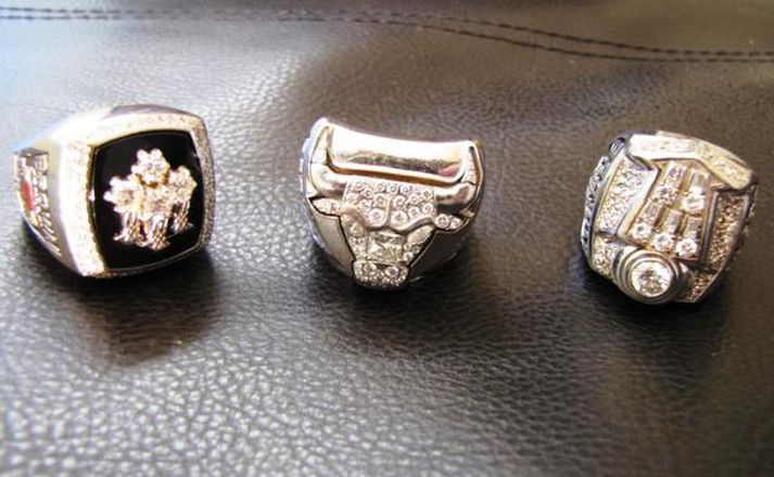 Hörðustu stuðningsmenn Chicago Bulls eiga nú möguleika á að eignast meistarahringa félagsins frá því að það vann þrjá titla í röð á árunum 1996-98. Það er til siðs í NBA deildinni að allir leikmenn og þjálfarar meistaraliðanna fái sérstaka meistarahringa afhenta í upphafi næstu leiktíðar og einn af leikmönnum Bulls liðsins frá því um miðjan síðasta áratug hefur nú neyðst til að setja hringana sína á uppboð vegna gjaldþrots. Þetta er leikstjórnandinn Randy Brown sem var varamaður í ógnarsterku liði Chicago á tíunda áratugnum sem hafði á að skipa þeim Michael Jordan, Scottie Pippen, Dennis Rodman og Tony Kukoc svo einhverjir séu nefndir. Það er uppboðshaldari í Sacramento í Kaliforníu sem er með hringana á skrá hjá sér ásamt bílum og öðru fíneríi úr eigu Brown. Það er auðvitað ekki fyrir hvern sem er að bjóða í gripina, en fyrsta tilboð í hringana þrjá er upp á 2,5 milljónir króna. Smelltu hér til að sjá myndir af hringunum.
