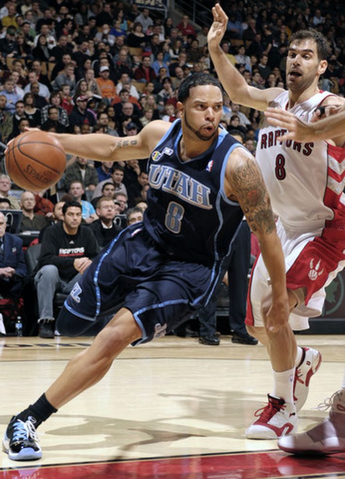 Lengsta sigurganga Utah Jazz í áratug - Boston tapaði Óskar Ófeigur Jónsson skrifar 9. mars 2009 08:57 Deron Williams lék vel í sigri Utah á Houston. Mynd/GettyImages Sigurganga Utah Jazz hélt áfram í NBA-deildinni í nótt þegar liðið vann sinn ellefta leik í röð. Meistararnir í Boston Celtics þurftu hinsvegar að sætta sig við tap á heimavelli á móti Orlando Magic. Deron Williams var með 25 stig og 9 stoðsendingar í 109-101 sigri Utah á Toronto en hann var einn fimm leikmönnum liðsins með 18 stig eða fleiri. Hinir voru Kyle Korver (20 stig), Mehmet Okur (19 stig, 11 fráköst), Paul Millsap (18 stig, 11 fráköst) og Andrei Kirilenko (18 stig). Utah vann síðast ellefu leiki í röð í apríl 1999 en liðið er nú búið að vinna átta leiki í röð á móti Raptors. Chris Bosh var með 30 stig og 10 fráköst hjá Toronto. Orlando Magic nálgaðist efstu lið Austurdeildarinnar með sjö stiga útisigri, 86-79, á Boston Celtics en liðið var samt nærri því búið að kasta frá sér 22 stiga forustu. Dwight Howard var með 18 stig og 15 fráköst hjá Orlando og setti niður mikilvæg víti í lokin. Ray Allen var stigahæstur hjá Boston en hann skoraði 17 af 32 stigum sínum í lokaleikhlutanum. Þetta var fjórði sigur Orlando í röð og liðið er nú bara tveimur sigrum á eftir Boston og þremur sigrum á eftir toppliði Cleveland. Tony Parker er sjóðandi heitur þessa daganna og hann braut 30 stiga múrinn í fjórða sinn í síðustu sjö leikjum þegar hann skoraði 30 stig í 103 sigri San Antonio Spurs á Phoenix Suns. Tim Duncan var með 17 stig og 15 fráköst fyrir San Antonio en hjá Phoenix var Steve Nash með 23 stig og 11 stoðsendingar. Eftir marga nauma ósigra vann New Jersey Nets loksins jafnan leik þegar liðið vann nágranna sína í New York Knicks 106-101 í nótt. Devin Harris var með 35 stig og 10 stoðsendingar í leiknum. Nets vaer búið að tapað þremur af síðustu fjórum leikjum sínum með þriggja (New Orleans og Orlando) og fjögurra (Boston) stiga mun. David Lee var með 19 stig og 14 fráköst hjá Knicks. Yao Ming var með 24 stig og 17 fráköst í 93-83 sigri Houston Rockets á Memphis Grizzlies. Þetta var tólfti heimasigur Houston í röð. Oklahoma Thunder vann 89-74 sigur á Philadelphia 76ers en þetta var fjórði sigur liðsins í fimm leikjum án stjörnuleikmanns síns Kevin Durant sem er meiddur á ökkla. Nenad Krstic skoraði 20 stig fyrir Thunder. Kevin Martin átti flottan leik fyrir Sacramento Kings sem vann 114-106 sigur á Denver Nuggets. Martin var með 26 stig, 7 fráköst og 8 stoðsendingar. Andres Nocioni er að koma sér vel fyrir í Sacramento og var með 23 stig. Carmelo Anthony var stigahæstur hjá Denver með 32 stig. NBA Mest lesið Bunting dró orð sín til baka með tárin í augunum: „Ég er ekki meistari fólksins“ Sport Sakaður um svindl á HM í pílukasti Sport Áhorfendur ærðust eftir mögulega mark mótsins í fyrsta leik Fótbolti Sjáðu geggjaðan snúning Alberts áður en hann skoraði frábært mark Fótbolti Óskar Hrafn um komu Arnórs Ingva: „Gífurlega dýrmætt fyrir KR“ Íslenski boltinn Klappstýrur Björgvins Karls slógu í gegn Sport Ótrúleg tíðindi á HM í pílukasti: „Mikið sjokk“ Sport Óttast að Isak hafi fótbrotnað Enski boltinn Hleður Kjartan lofi eftir frábæra frumraun með Aberdeen Fótbolti Í bann fyrir að kasta flösku í barn Körfubolti Fleiri fréttir ÍR-ingar bæta við sig reyndum og hittnum Króata Í bann fyrir að kasta flösku í barn Hjalti Þór ráðinn aðalþjálfari Álftaness Kolbrún María kom við sögu í endurkomu Hannover Næstframlagshæstur í grátlegu tapi Fékk næstum 4,5 milljóna króna sekt fyrir að sýna dómara fingurinn „Komum eins og aumingjar inn í þennan leik“ „Jólasteikin mun bragðast betur í ljósi þessa sigurs“ Stjarnan - Álftanes 108-104 | Unnu grannaslaginn naumlega Uppgjörið: Ármann - ÍA 102-83 | Ármann náði í gríðarlega mikilvæg stig í fallbaráttunni með sigri gegn Skagamönnum Jokic tók NBA-met af Abdul-Jabbar í nótt KR á frábærum stað en getur ekki unnið titilinn Útilokar ekki breytingar: „Er klárlega að líta í kringum mig“ Uppgjörið: Keflavík - Njarðvík 93-83 | Enn taplausir í Sláturhúsinu „Ánægður að spila ekki betur en þetta en vinna samt“ „Svo lengi sem það er ekki jákvæð og góð umfjöllun um okkur erum við sáttir“ „Hefðum þurft að hafa heppnina með okkur í liði“ ÍR - Valur 82-85 | Baráttusigur í Breiðholti „Sáttur að geta farið heim, borðað vel og fengið mér nokkra kalda“ Tindastóll - KR 130-117 | Kláruðu gestina í seinni hálfleik Þór Þ. - Grindavík 94-106 | Baráttusigur gegn löskuðu liði Þórs Liðsfélagar Guðbjargar ekki fæddir þegar hún spilaði fyrsta leikinn Þola þeir ekki gott umtal? „Helmingur minna leikmanna skilur ekki íslensku“ „Ef við hefðum ekki verið að setja þessi skot þá hefðum við skíttapað“ KR á toppinn Uppgjörið: Grindavík - Haukar 92-93 | Fullkomin jólagjöf Spilaði 13 mínútur en var stigahæstur Rýndu í gamlar myndir: „Svakalega ertu kringlóttur í framan“ Guðbjörg fyrsta konan í fjögur hundruð leikina Stjarnan og Grindavík mætast í bikarnum Sjá meira