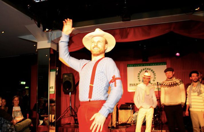 Meðfylgjandi myndir voru teknar á tískusýning á vegum Herrafataverslunar Kormáks og Skjaldar þar sem meðal annars var sýnd ný fatalína eftir Guðmund Jörundsson. Fyrirsæturnar voru ekki af verri endanum: Davíð Þór Jónsson tónlistarmaður, Kjartan Sturluson fótboltamaður, Aron Bergmann leikmyndahönnuður, Sigurður Guðmundsson tónlistarmaður, Högni Egilsson tónlistarmaður, Böðvar Guðjónsson formaður körfuknattleiksdeildar KR, Georg Kári Hilmarsson fyrrum sprenjuhallarmeðlimur, Stebbi Stef úr GusGus, Róbert Marshall þingmaður og Guðmundur Steingrímsson þingmaður.