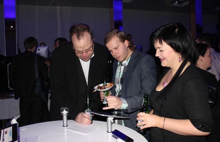 Nýr og endurbættur Vísir var opnaður formlega á skemmtistaðnum Nasa í kvöld. Fjöldi gesta og starfsfólk Vísis kynnti sér nýjungarnar og gæddu sér á mat og drykk. Meðfylgjandi má sjá myndir af gestunum, Ara Eldjárn sem var með uppistand og Ara Edwald forstjóra 365 sem sagði líka nokkur vel valin orð sem féllu ekki síður vel í kramið hjá nærstöddum en grínið hjá hinum fyrrnefnda. Nýr og endurbættur Vísir var opnaður formlega á skemmtistaðnum Nasa 22.10.2010. Fjöldi gesta og starfsfólk Vísis kynnti sér nýjungarnar og gæddu sér á mat og drykk.