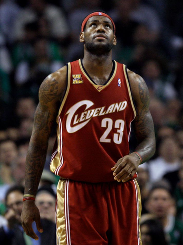 Lebron James og félagar duttu út úr 2. umferð úrslitakeppni NBA-deildarinnar í körfubolta í fyrrinótt þegar þeir töpuðu þriðja leiknum í röð á móti Boston Celtics og þar með seríunni 2-4. Þetta þýddi að Lebron James þarf nú að bíða lengur eftir fyrsta meistaratitlinum en fyrirmyndin hans - sjálfur Michael Jordan. Þeir hafa verið bornir saman frá fyrsta degi James í deildinni og hér fyrir neðan má sjá yfirlit yfir bið þessara tveggja frábæru leikmanna eftir fyrsta titlinum. Lebron James er búinn að leika 71 leik í úrslitakeppni og er með 29.3 stig, 8,4 fráköst og 7,6 stoðsendingar að meðaltali í úrslitakeppninni. Jordan var með 34,6 stig, 6,8 fráköst og 7,1 stoðsendingu að meðaltali í þeim 70 leikjum sem hann lék í úrslitakeppni fyrstu sjö tímabilin sín í NBA-deildinni. Bið Michael Jordan eftir fyrsta titlinum 1. tímabil (1984-85) Tapaði í fyrstu umferð fyrir Milwaukee Bucks (1-3) 2. tímabil (1985-86) Tapaði í fyrstu umferð fyrir Boston Celtics (0-3) 3. tímabil (1986-87) Tapaði í fyrstu umferð fyrir Boston Celtics (0-3) 4. tímabil* (1987-88) Tapaði í 2. umferð fyrir Detroit Pistons (1-4) 5. tímabil (1988-89) Tapaði í úrslitum Austurdeildar fyrir Detroit Pistons (2-4) 6. tímabil (1989-90) Tapaði í úrslitum Austurdeildar fyrir Detroit Pistons (3-4) 7. tímabil* (1990-91) NBA-meistari * Kosinn besti leikmaður deildarinnar Bið Lebron James eftir fyrsta titlinum1. tímabil (2003-04) Komst ekki í úrslitakeppnina 2. tímabil (2004-05) Komst ekki í úrslitakeppnina 3. tímabil (2005-06) Tapaði í 2. umferð fyrir Detroit Pistons (3-4) 4. tímabil (2006-07) Tapaði í lokaúrslitum fyrir San Antonio Spurs (0-4) 5. tímabil (2007-08) Tapaði í 2. umferð fyrir Boston Celtics (3-4) 6. tímabil* (2008-09) Tapaði í úrslitum Austurdeildar fyrir Orlando Magic (2-4) 7. tímabil* (2009-10) Tapaði í 2. umferð fyrir Boston Celtics (2-4) * Kosinn besti leikmaður deildarinnar