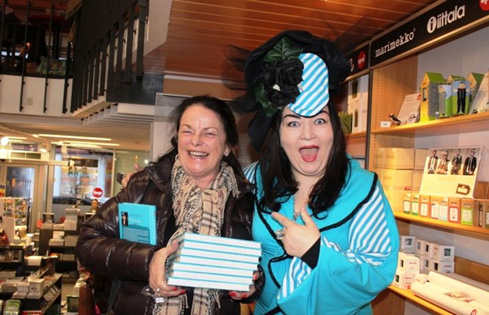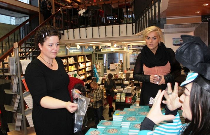 Frábær stemning var í Mál og menningu á Laugaveginum í gærdag þar sem Sigríður Klingenberg kynnti nýju bókina sína Orð eru álög - leiðarvísir að lífsgleði. Sigríður áritaði, las upp úr bókinni og gaf gestum álagasteina sem vöktu mikla lukku. Eins og meðfylgjandi myndir sýna var Sigríður klædd í kjól í stíl við bókina.
