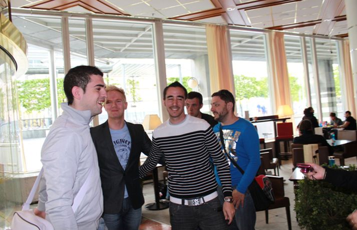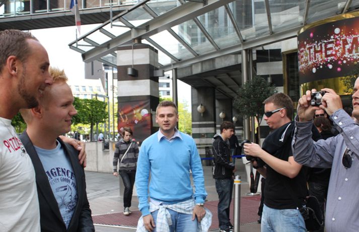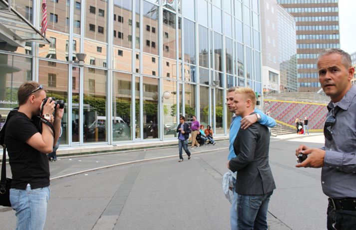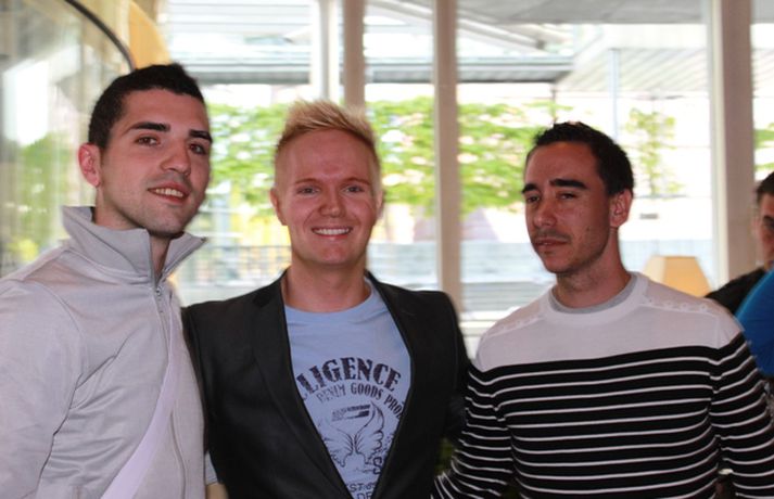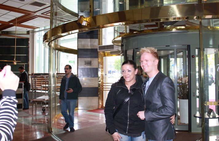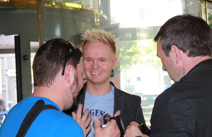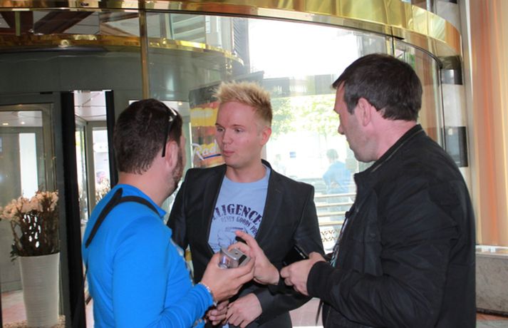 „Ég vona náttúrulega að við vinnum. Engin spurning," sagði Friðrik Ómar söngvari þegar við hittum hann í Osló í dag. Eurobandið, þau Friðrik Ómar og Regína Ósk, sungu fyrir fullu húsi í gærkvöldi á næturklúbbnum Latter í miðborg Oslóar. Á meðan á samtali okkar stóð beið fólk í röðum eftir að mynda Friðrik eins og sjá má í myndasafni.