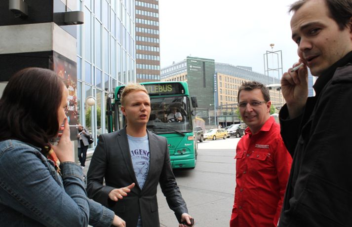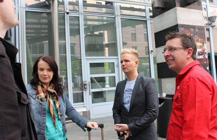 Eurovision: Greinilega ekkert stressuð - myndband Íslenski Eurovision hópurinn sem staddur er í Osló er greinilega afslappaður þrátt fyrir þá staðreynd að stóra stundin rennur upp í kvöld. Þegar við mynduðum þau yfirgefa rútuna fyrir utan hótelið þeirra fyrir tæpri stundu voru þau skellihlæjandi eins og sjá má í myndskeiðinu. 29. maí 2010 14:00