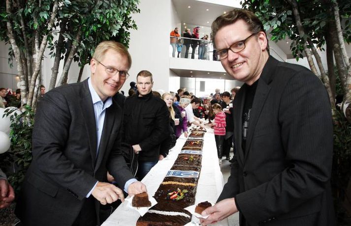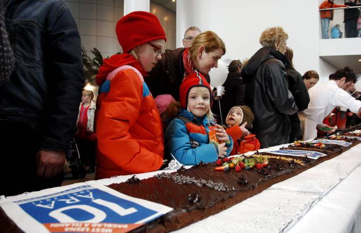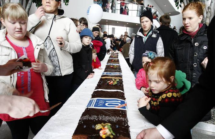 Eins og meðfylgjandi myndir sýna var frábær stemning á tíu ára afmælishátíð Fréttablaðsins sem fram fór í Perlunni á laugardaginn. Hátt í tíu þúsund gestir á öllum aldri fögnuðu áfanganum ásamt starfsfólki Fréttablaðsins. Páskaeggjaleikur fór fram í Öskjuhlíðinni og boðið var upp á gómsæta tíu metra langa köku með yfir 2000 kökusneiðum sem kláraðist á 45 mínútum. Þá var einnig boðið upp á Svala, heitt kakó og hátt í þúsund vöfflur með rjóma. Skoppa og Skrítla, leikhópurinn Lotta, Friðrik Dór, Pollapönk og Páll Óskar héldu uppi stuðinu og Franzína mús var kynnir.