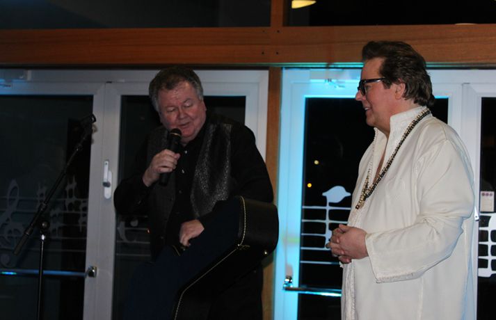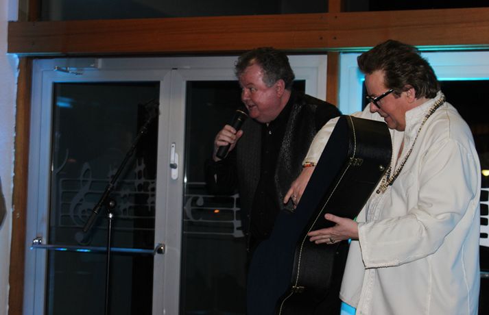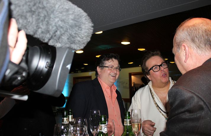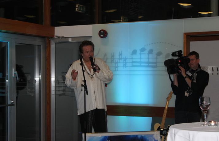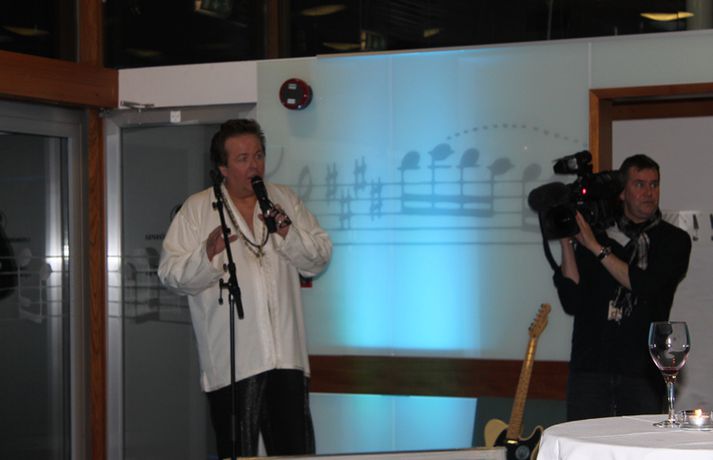 Meðfylgjandi myndir voru teknar í Háskólabíó í sextíu ára afmælisveislu Björgvins Halldórssonar eftir síðari tónleika hans í kvöld sem voru vægast sagt frábærir að sögn tónleikagesta. Eins og sjá má á myndunum mætti fjölmenni í veisluna og Björgvin, sem var í sannkölluðu hátíðarskapi, fékk meðal annars gítar að gjöf frá félögunum.