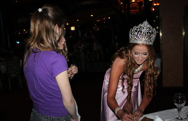 Eins og sjá má á meðfylgjandi myndum var húsfyllir á veitingahúsinu Broadway í gærkvöldi þegar Sigrún Eva Ármannsdóttir, 18 ára, var valin Ungfrú Ísland. Sigrún Eva, sem er nemi í Fjölbrautaskóla Vesturlands, felldi tár þegar titillinn var í höfn eins og greinilega má sjá hér. Guðlaug Dagmar Jónasdóttir varð í 2. sæti og Sigríður Dagbjört Ásgeirsdóttir landaði 3. sætinu.Hér má sjá myndir af fegurðardrottningunum.MYNDIR/elly@365.is