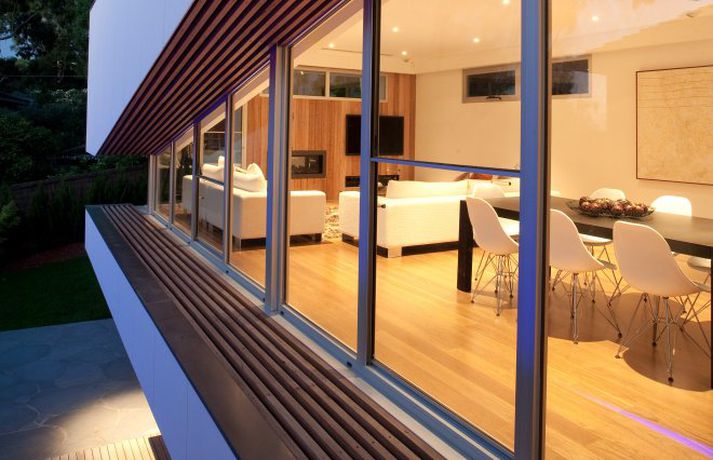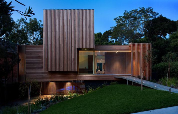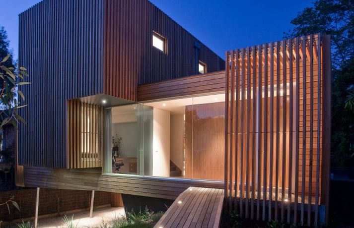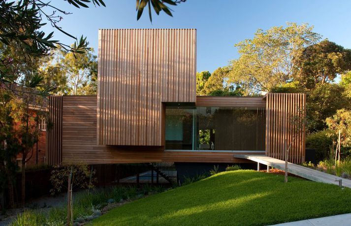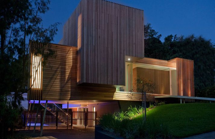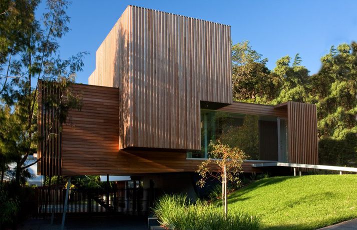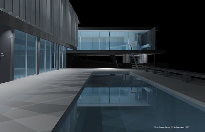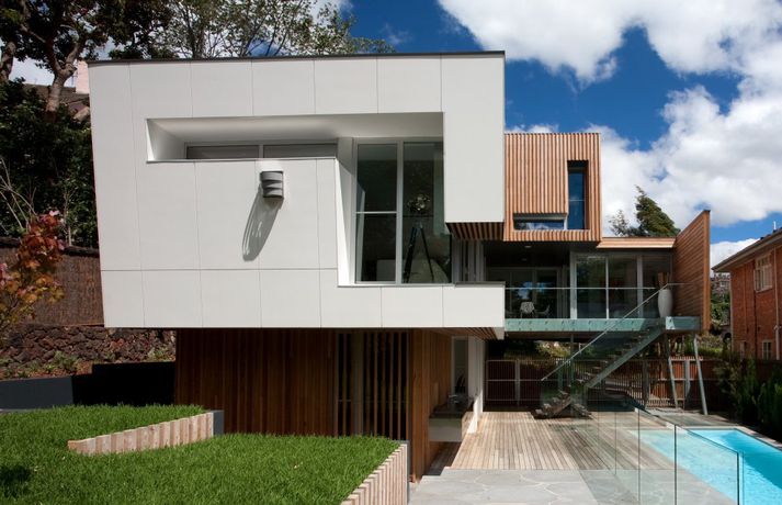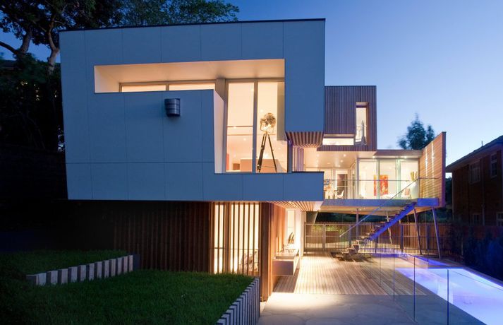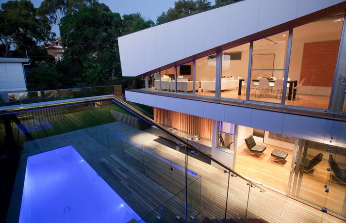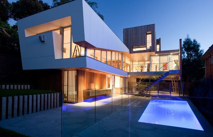 Sundlaugin við húsið sem staðsett er í Ástralíu kallar svo sannarlega á mann. Húsið, sem er hannað af arkitektum sem kalla sig Vibe Design Group, er sérstakt í útliti eins og sjá má í myndasafni en lögð var áhersla á að birtan fengi að njóta sín og að allar hliðar hússins myndu gleðja íbúa þess þegar kemur að útliti og notagildi.Hér má skoða hús þar sem hrá steypan nýtur sín.