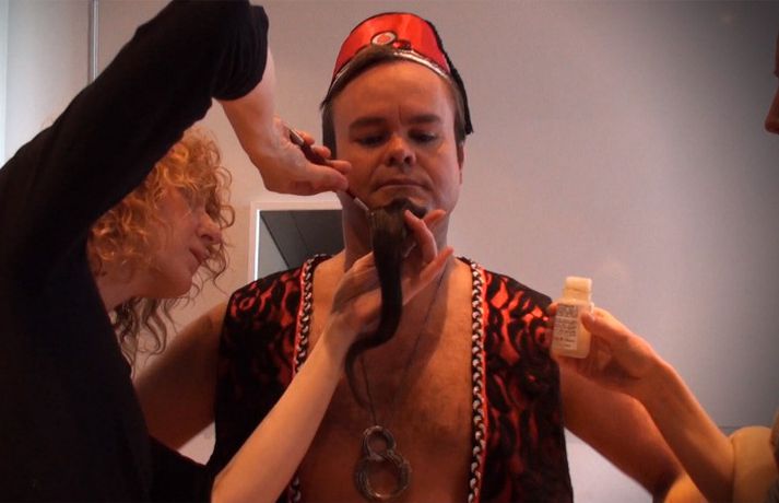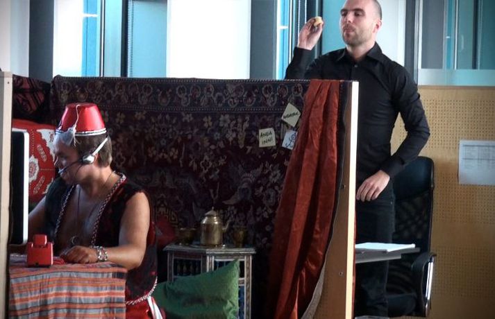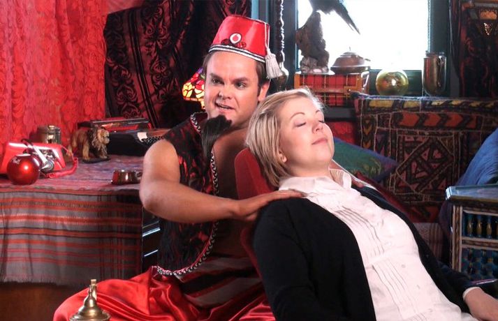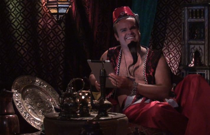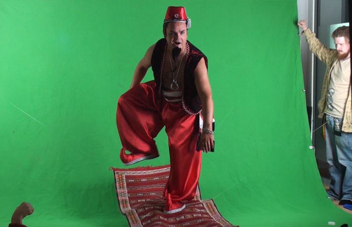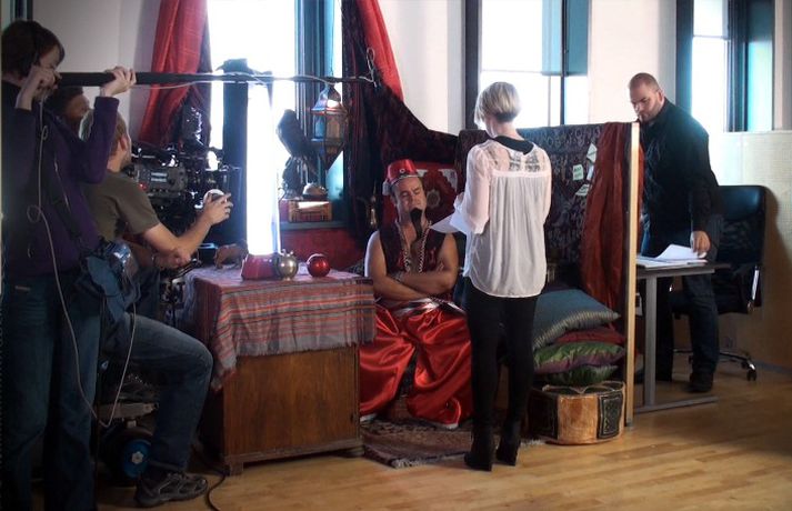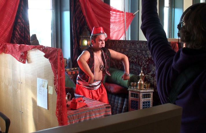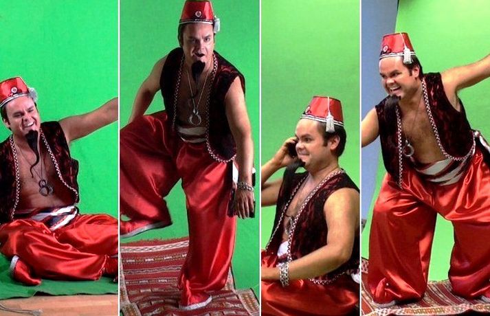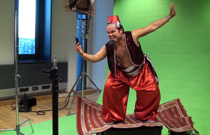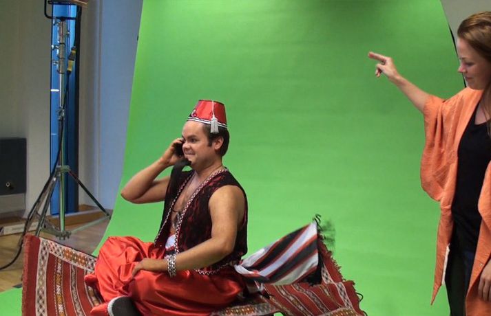 Meðfylgjandi myndir voru teknar við gerð nýrrar Vodafone auglýsingaherferðar með Pétri Jóhanni Sigfússyni leikara í aðalhlutverki. Eins og sjá má á myndunum kemur hæna við sögu og Pétur Jóhann virðist smellpassar í hlutverk andans sem flýgur um á teppi í rauðum andabuxum sem klæða Pétur áberandi vel. Handritið er samið af Braga í Baggalút hjá auglýsingastofunni Fíton en leikstjórn var í höndum tvíeykisins Samma og Gunna hjá TrueNorth. Þá má greinilega sjá að góð stemning ríkti við tökurnar.