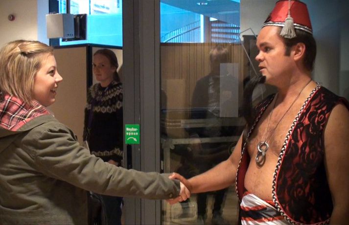 Þessar buxur fara þér vel Pétur Jóhann 8. október 2011 12:19 Meðfylgjandi myndir voru teknar við gerð nýrrar Vodafone auglýsingaherferðar með Pétri Jóhanni Sigfússyni leikara í aðalhlutverki. Eins og sjá má á myndunum kemur hæna við sögu og Pétur Jóhann virðist smellpassar í hlutverk andans sem flýgur um á teppi í rauðum andabuxum sem klæða Pétur áberandi vel. Handritið er samið af Braga í Baggalút hjá auglýsingastofunni Fíton en leikstjórn var í höndum tvíeykisins Samma og Gunna hjá TrueNorth. Þá má greinilega sjá að góð stemning ríkti við tökurnar. Skroll-Lífið Mest lesið Lét flúra brúðkaupsdaginn á sig en gerði mistök Lífið Breytti um nafn eftir djúpa ástarsorg Tónlist Ótrúlegur bílskúr Hönnu Rúnar: „Hvar ertu?“ Lífið Fasteignasalar og ofurskvísur í Októberfest stemningu Lífið Eitt glæsilegasta hús Reykjavíkur til sölu Lífið Sigurjón og Sóley gjörbreyttu eldhúsinu með einstakri útkomu Lífið Blondie verður stjarnan á RIFF um helgina Lífið „Fallegasti drengur í heimi“ er látinn Bíó og sjónvarp Komu höndum yfir fæðingarvottorðið og ljóstruðu upp um fæðinguna Bíó og sjónvarp Elegant eftirréttur sem hlýjar um hjartarætur Matur Fleiri fréttir Ótrúlegur bílskúr Hönnu Rúnar: „Hvar ertu?“ Lét flúra brúðkaupsdaginn á sig en gerði mistök Sviti, mjólk og hóstakast eftir að hafa manað hvor annan Yfir 170 góðgerðafélög hlutu styrk í áheitasöfnun Reykjavíkurmaraþons Sigurjón og Sóley gjörbreyttu eldhúsinu með einstakri útkomu „Alvöru“ jólasveinn gisti á Hótel Rangá Fasteignasalar og ofurskvísur í Októberfest stemningu Eitt glæsilegasta hús Reykjavíkur til sölu „Þetta er það fallegasta sem einhver hefur sagt um mig“ Hvað þýðir „six-seven“? Smáforrit til að deila heimilisverkum: „Fæ þrjú stig fyrir að þurrka af á heimilinu“ Kynslóðabilið kom í ljós þegar umræðan beindist að blautbolakeppni Ljúffengar banana- og kakóbollakökur í nestisboxið Troðningur á yfirfullri opnun: „Þetta var svolítið kreisí“ Pétur Kr. og Ingibjörg selja 270 fermetra eign við Ægisíðu Barist upp á líf og dauða „Get ekki hætt að hugsa um bragðarefinn sem hann pantaði“ Langþráður draumur verður að veruleika Samsæriskenningar notaðar sem stjórntæki Stjörnulífið: „Dagur sem mun aldrei gleymast“ Gisti hálft ár á sófum hjá bekkjarfélögum Betra að vera blankur nemi í New York Kynlífið innantómt með öðrum en fyrrverandi Fékk lífið til baka á korteri eftir tólf ár af sársauka Staðfesta loks sambandið Einar og Milla skírðu drenginn Með blæðandi hjarta og ber örin með stolti Krakkatían: Kvennafrídagurinn, Ólsen ólsen og málsháttur Áslaug Arna kom alblóðug inn í sjúkratjaldið Upplifði stöðugan ótta við helvíti í samfélagi múslima í Svíþjóð Sjá meira