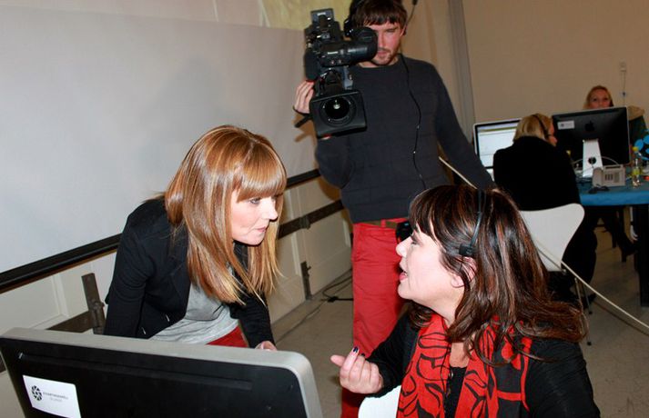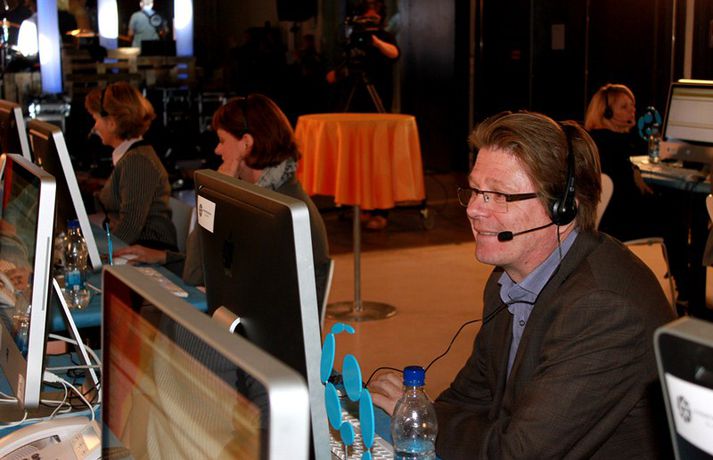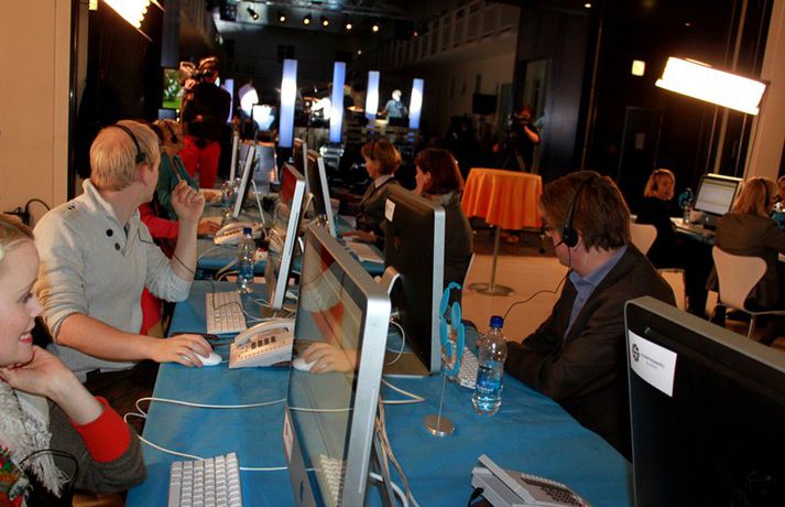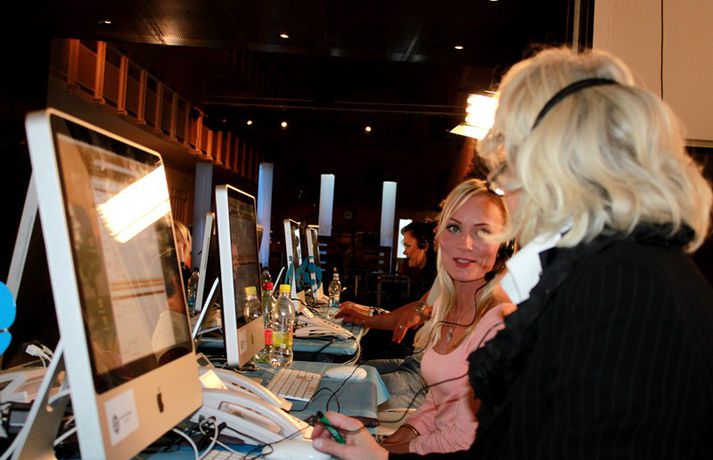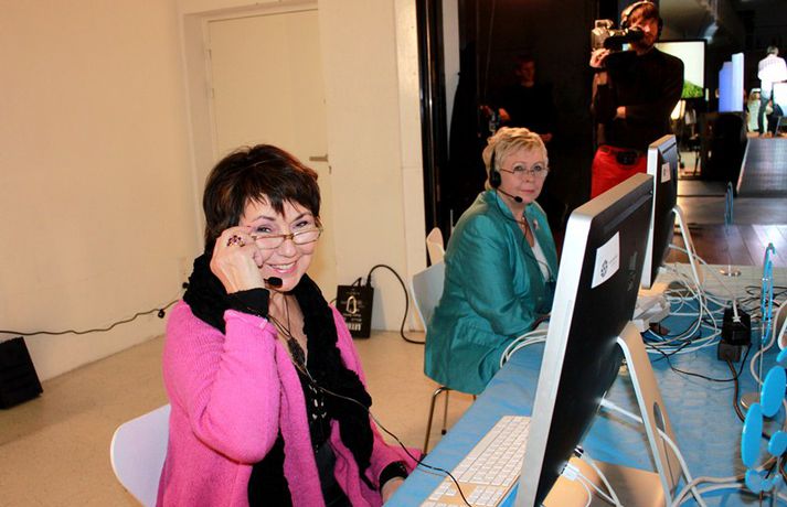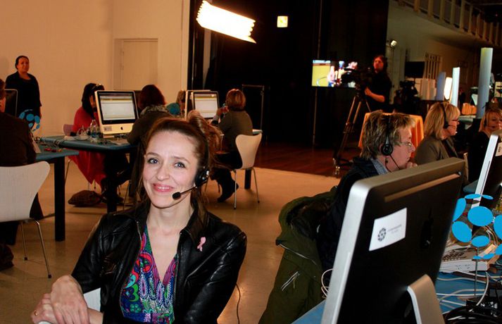 Eins og sjá má á meðfylgjandi myndum, sem teknar voru í Hafnarhúsinu í kvöld, þar sem söfnunarátak SEM, Samtök Endurhæfðra Mænuskaddaðra, fór fram var mikill samhugur og góð stemning á meðal fólks sem stóð að útsendingunni, tók við framlögum símleiðis og skemmtu. Yfir 18 milljónir söfnuðust en markmið átaksins er að efla samhjálp mænuskaddaðra, vinna að auknum réttindum þeirra og bættri aðstöðu í þjóðfélaginu.Áfram verður hægt að leggja söfnuninni lið en hún er opin til 10. október.myndir/elly@365.is