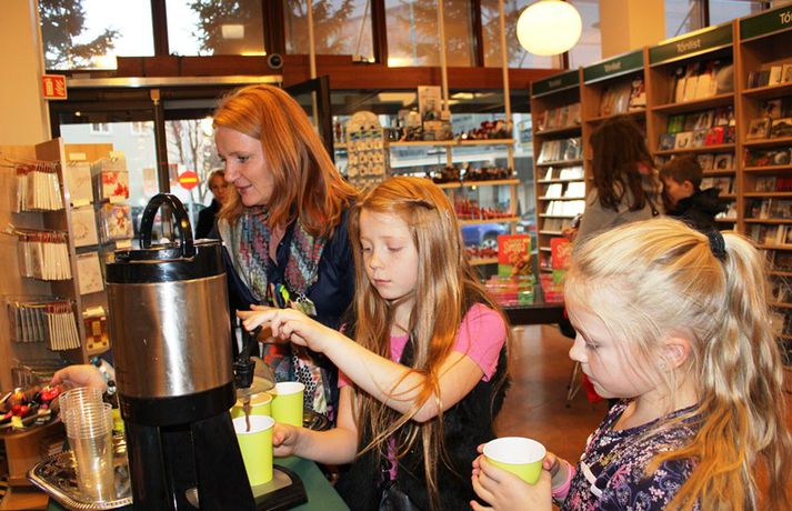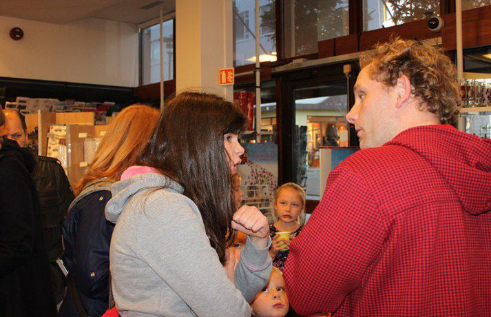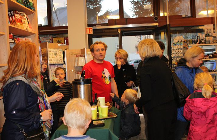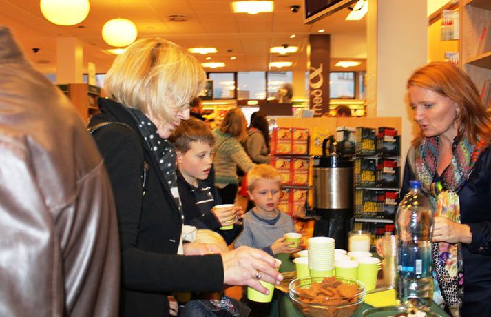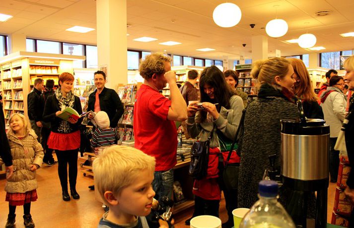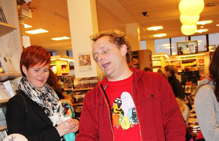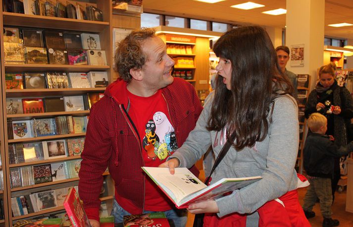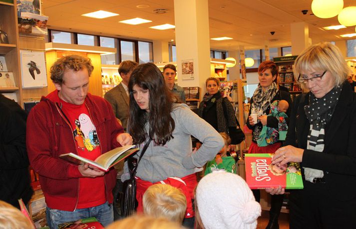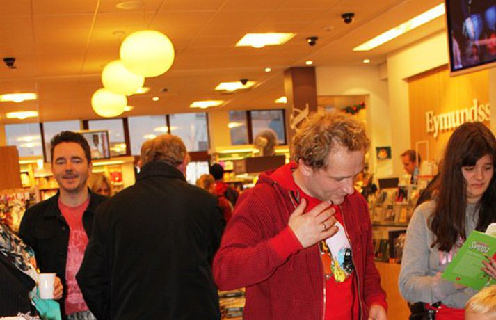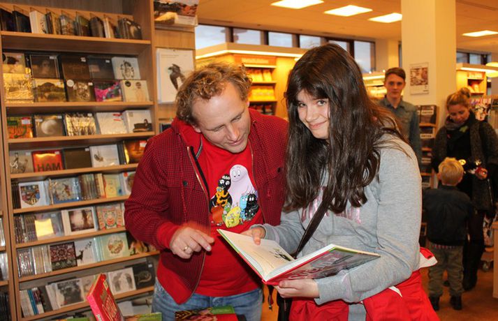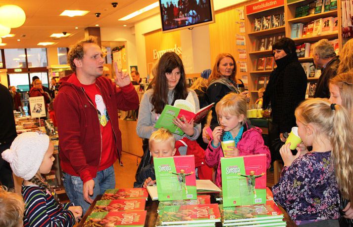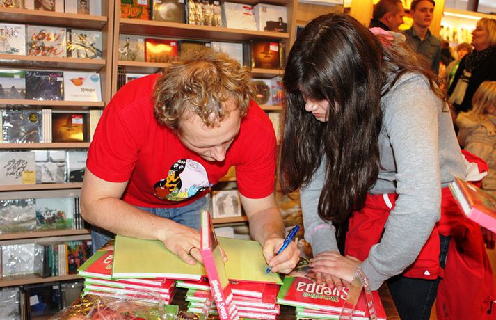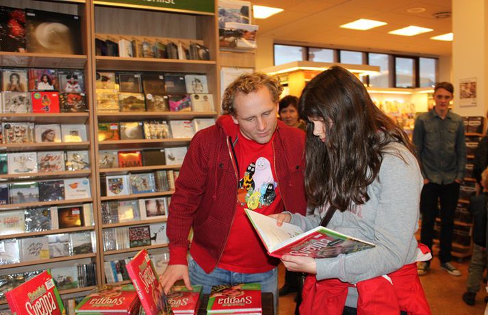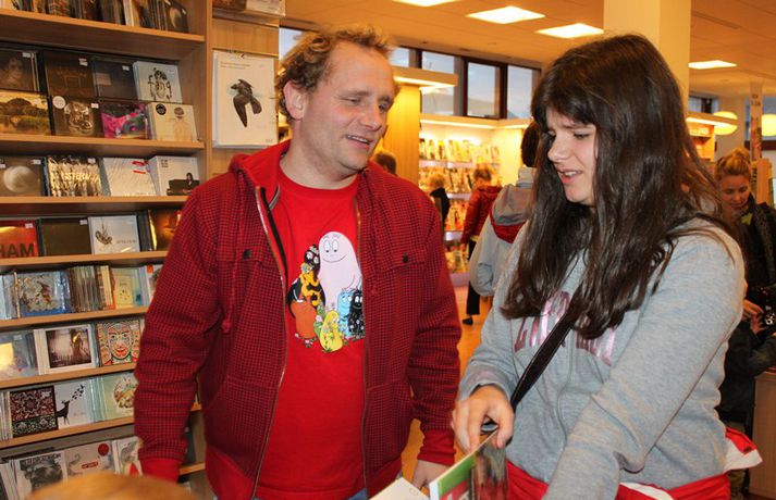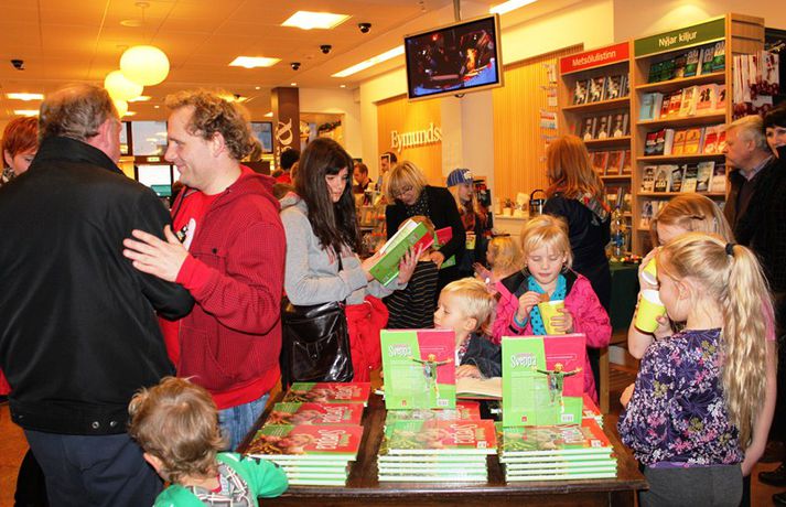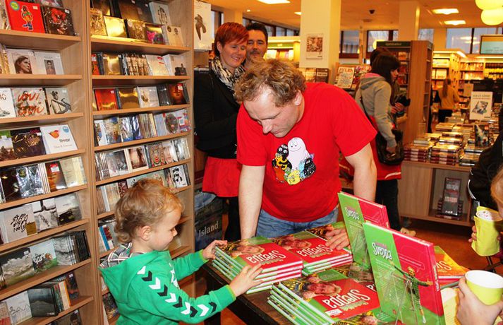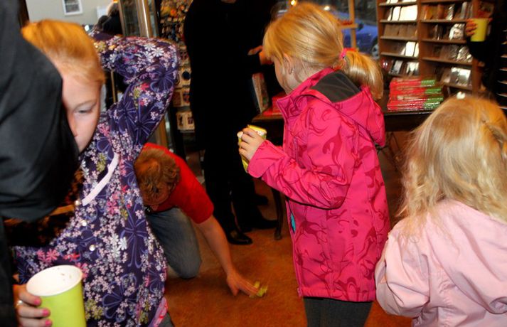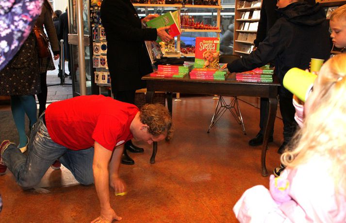Sveppi er svo með´etta elly@365.is skrifar 12. nóvember 2011 20:45 myndir/elly Fjöldi barna og fullorðinna mættu í Eymundsson við Skólavörðustíg í dag í tilefni af útkomu bókarinnar Skemmtibók Sveppa þar sem Sveppi hefur tekið saman alla uppáhalds leikina sína, hugmyndir að alls kyns tómstundum og dægradvöl, brandara og brellur, fyndnar örsögur, gómsætar, einfaldar uppskriftir, þrautir og ýmiss konar heilafóður. Sérstaka athygli vakti hvað Sveppi var þolinmóðir og blíður við ungu gestina sem gæddu sér á heitu súkkulaði og piparkökum á milli þess sem þeir spjölluðu við sjónvarpsstjörnuna. Ef meðfylgjandi myndir eru skoðaðar má sjá að Sveppi gerði sér lítið fyrir og skellti sér á fjórar fætur til að þurrka upp kakó sem helltist óvart niður. Skroll-Lífið Mest lesið Lét flúra brúðkaupsdaginn á sig en gerði mistök Lífið Breytti um nafn eftir djúpa ástarsorg Tónlist Ótrúlegur bílskúr Hönnu Rúnar: „Hvar ertu?“ Lífið Fasteignasalar og ofurskvísur í Októberfest stemningu Lífið Eitt glæsilegasta hús Reykjavíkur til sölu Lífið Sigurjón og Sóley gjörbreyttu eldhúsinu með einstakri útkomu Lífið Blondie verður stjarnan á RIFF um helgina Lífið „Fallegasti drengur í heimi“ er látinn Bíó og sjónvarp Komu höndum yfir fæðingarvottorðið og ljóstruðu upp um fæðinguna Bíó og sjónvarp Elegant eftirréttur sem hlýjar um hjartarætur Matur Fleiri fréttir Ótrúlegur bílskúr Hönnu Rúnar: „Hvar ertu?“ Lét flúra brúðkaupsdaginn á sig en gerði mistök Sviti, mjólk og hóstakast eftir að hafa manað hvor annan Yfir 170 góðgerðafélög hlutu styrk í áheitasöfnun Reykjavíkurmaraþons Sigurjón og Sóley gjörbreyttu eldhúsinu með einstakri útkomu „Alvöru“ jólasveinn gisti á Hótel Rangá Fasteignasalar og ofurskvísur í Októberfest stemningu Eitt glæsilegasta hús Reykjavíkur til sölu „Þetta er það fallegasta sem einhver hefur sagt um mig“ Hvað þýðir „six-seven“? Smáforrit til að deila heimilisverkum: „Fæ þrjú stig fyrir að þurrka af á heimilinu“ Kynslóðabilið kom í ljós þegar umræðan beindist að blautbolakeppni Ljúffengar banana- og kakóbollakökur í nestisboxið Troðningur á yfirfullri opnun: „Þetta var svolítið kreisí“ Pétur Kr. og Ingibjörg selja 270 fermetra eign við Ægisíðu Barist upp á líf og dauða „Get ekki hætt að hugsa um bragðarefinn sem hann pantaði“ Langþráður draumur verður að veruleika Samsæriskenningar notaðar sem stjórntæki Stjörnulífið: „Dagur sem mun aldrei gleymast“ Gisti hálft ár á sófum hjá bekkjarfélögum Betra að vera blankur nemi í New York Kynlífið innantómt með öðrum en fyrrverandi Fékk lífið til baka á korteri eftir tólf ár af sársauka Staðfesta loks sambandið Einar og Milla skírðu drenginn Með blæðandi hjarta og ber örin með stolti Krakkatían: Kvennafrídagurinn, Ólsen ólsen og málsháttur Áslaug Arna kom alblóðug inn í sjúkratjaldið Upplifði stöðugan ótta við helvíti í samfélagi múslima í Svíþjóð Sjá meira
