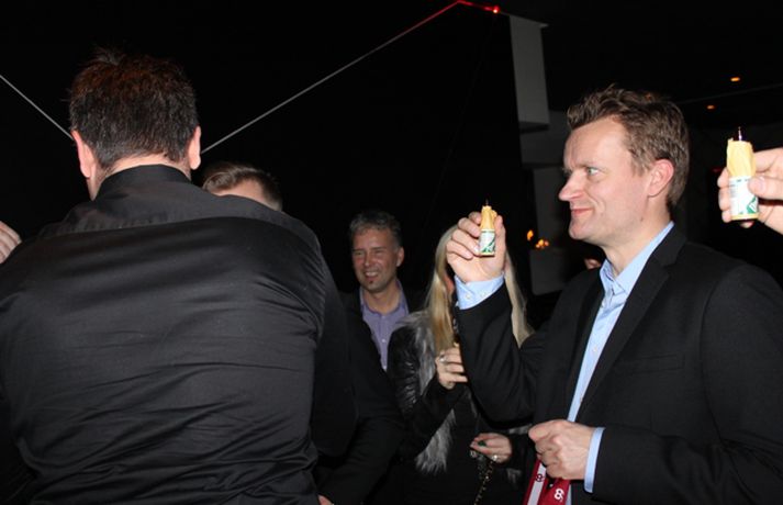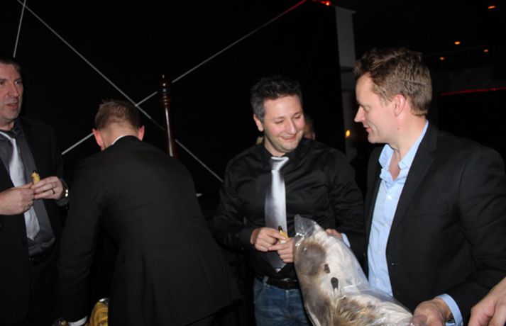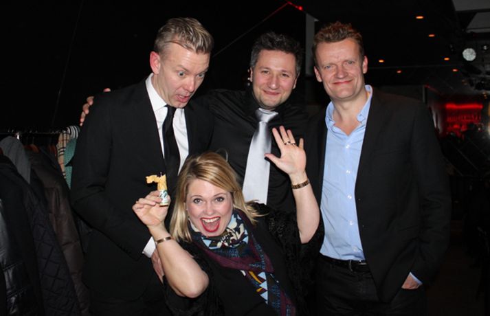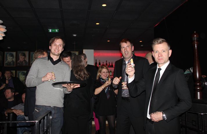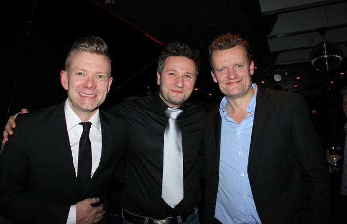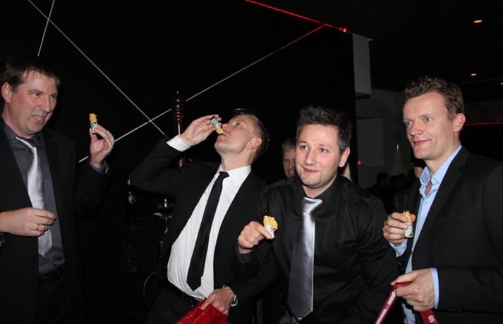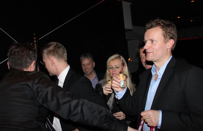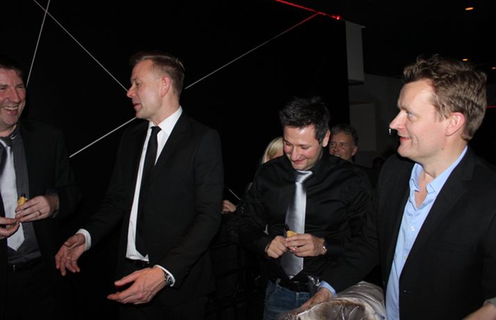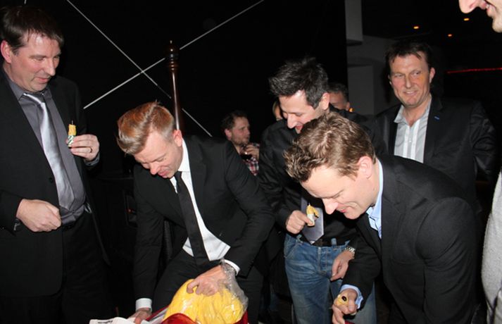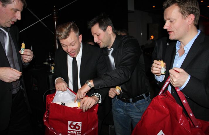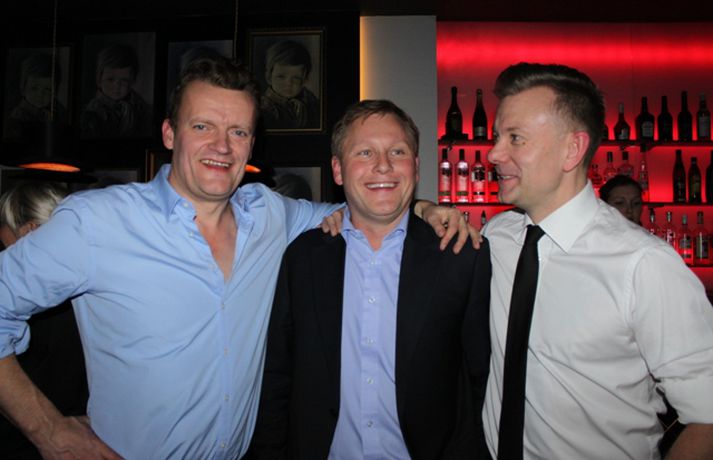 Félagana Casper Christiansen og Frank Hvam, sem staddir eru hér á landi til að kynna nýju kvikmyndina þeirra KLOVN, má skoða á meðfylgjandi myndum sem teknar voru á veitingahúsinu Austur í kvöld þegar SAMfélagið hélt stórglæsilega VIP veislu þeim til handa. Félagarnir, sem gista á svítunni á Hótel Holti fljúga á Saga Class með Icelandair, sem þeir dásömuðu í bak og fyrir, aftur heim til Kaupmannahafnar klukkan 08:00 í fyrramálið. 66 gráður norður færðu félögunum dúnúlpur að gjöf og eins og myndirnar sýna voru þeir í skýjunum með úlpurnar. Í gær, fimmtudag, pöntuðu þeir sér heimsreisuréttinn hjá Fiskfélaginu og djömmuðu síðan fram á rauðanótt í góðra vina hópi á barnum Dillon, sem er uppáhalds barinn þeirra.