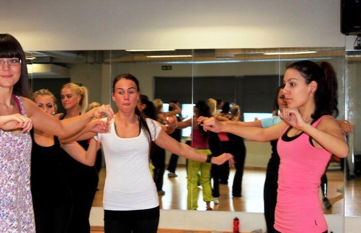 Fegurðardrottning Reykjavíkur 2011 verður krýnd með mikilli viðhöfn 25. febrúar næstkomandi á veitingahúsinu Broadway þar sem fegurstu fljóð höfuðborgarsvæðisins keppa um þessa eftirsóttu nafnbót. Eins og meðfylgjandi myndir sýna tóku keppendur ærlega á því í World Class í Laugum í dag. Frábær stemning ríkir í hópnum sem er áberandi hraustlegur og fagur á að líta. Þá má einnig sjá stúlkurnar teygja vel úr sér og dansa við taktfasta tónlist í Zumba tíma í myndasafni. MYNDBAND af keppendum.