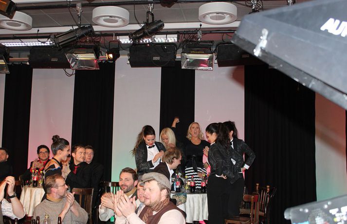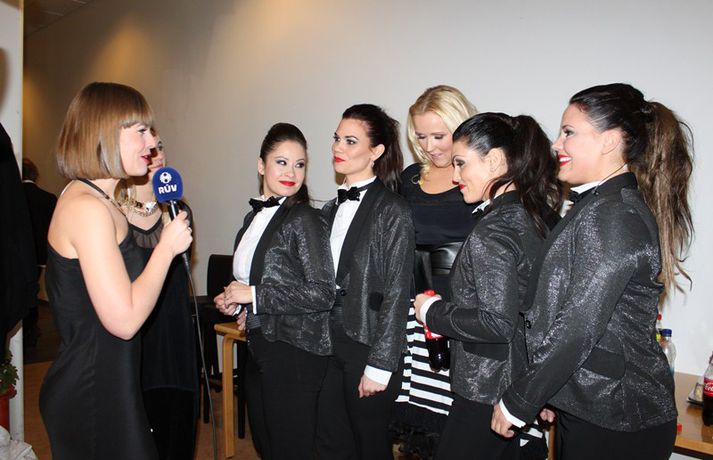 Meðfylgjandi myndir voru teknar í græna herberginu í undanúrslitum Söngvakeppni Sjónvarpsins í gærkvöldi. Frábær stemning var meðal keppenda eins og sjá má. Simbi og Hrútspungarnir og Regína Ósk tryggðu sér sæti í úrslitakeppninni með lögin Hjartað brennur og Hey.myndir/elly