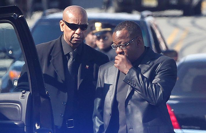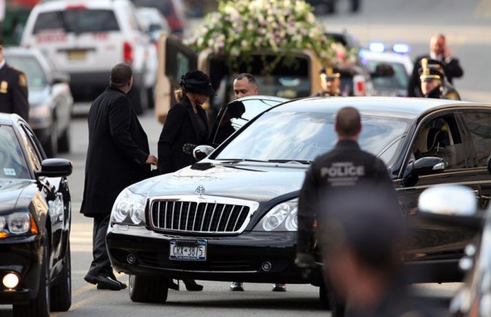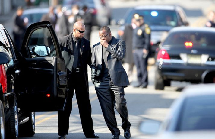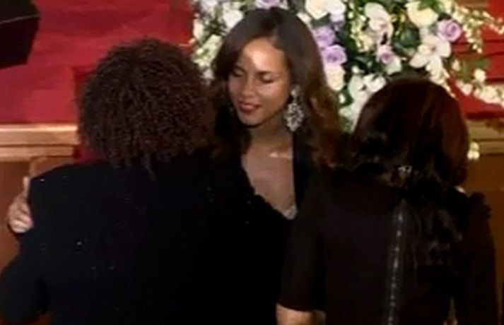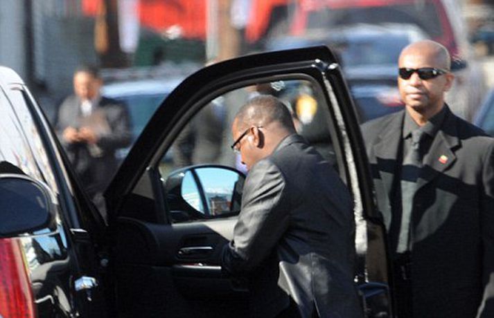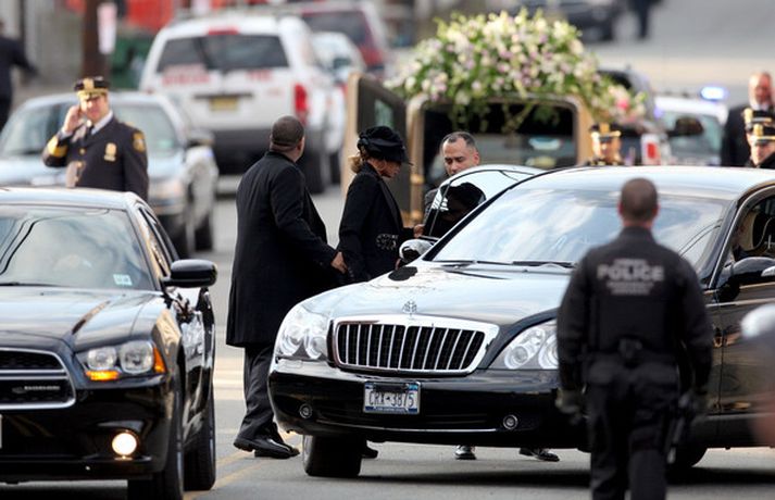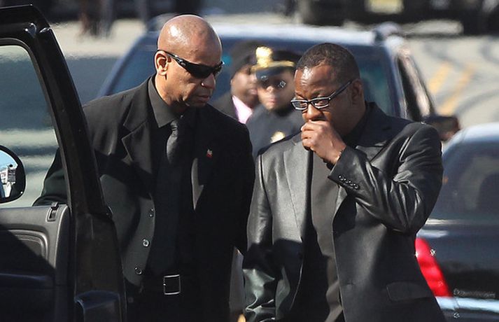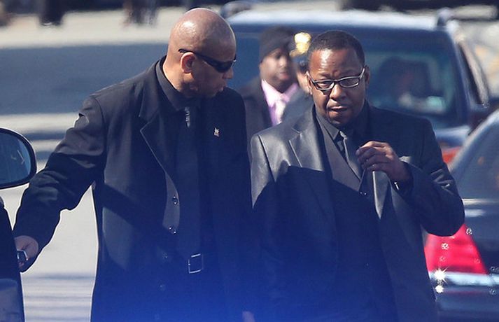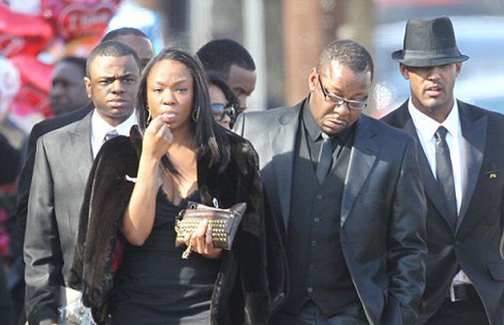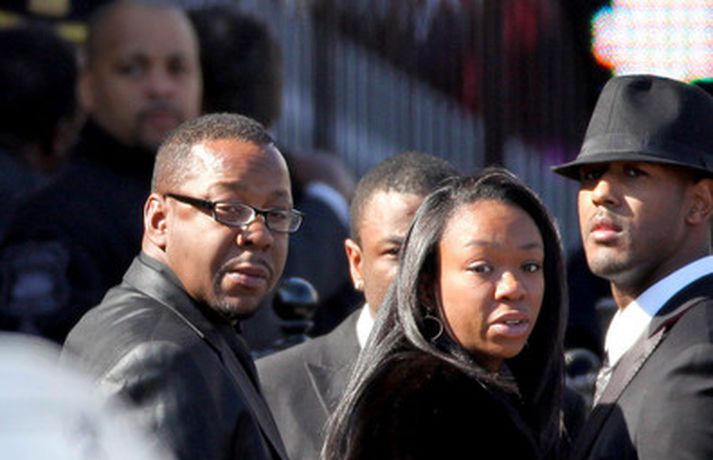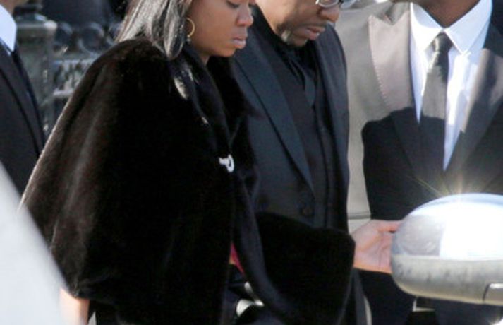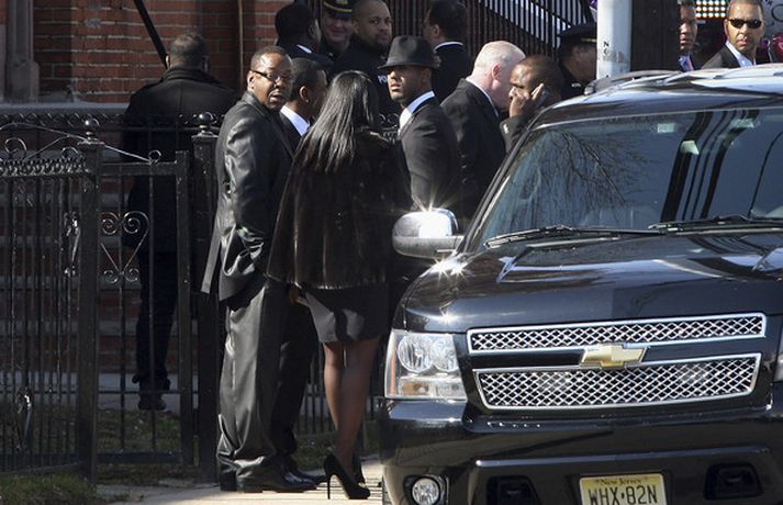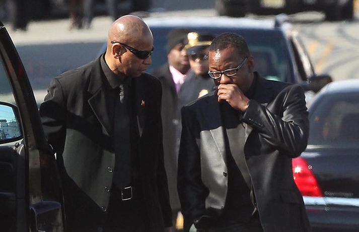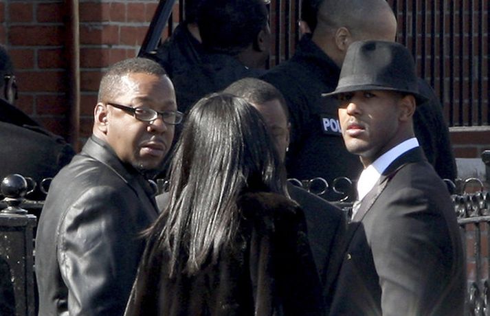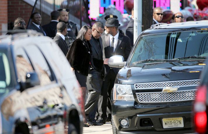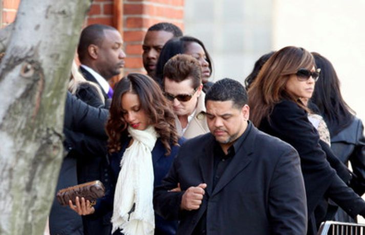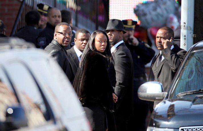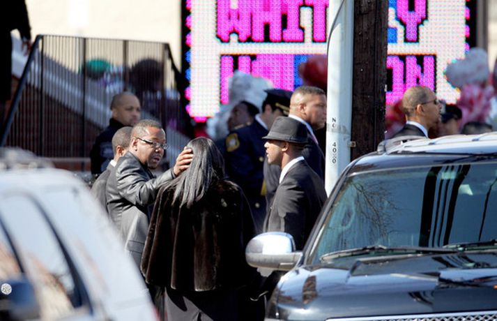 Meðfylgjandi myndir voru teknar í minningarathöfn Whitney Houston í gær. Maðurinn sem hún var gift í 15 ár, Bobby Brown, strunsaði út stuttu eftir að athöfnin, sem var falleg og tilfinningaþrungin, hófst því fylgdarliði hans bauðst ekki að sitja fremst í kirkjunni.Skoða myndirnar hér. Síðar sendi Bobby frá sér fréttatilkynningu um hvað hann var gríðarlega ósáttur hvernig komið var fram við fjölskyldu hans en kona hans grét fyrir utan kirkjuna eins og sjá má á myndunum. Þá kvartaði hann yfir því að hafa ekki fengið að hitta dóttur sína, Bobbi Kristinu, en Whitney fékk forræðið yfir stúlkunni eftir að þau skildu 2007. Kærasti Whitney, Ray J, teygði sig hágrátandi eftir líkkistunni og snerti hana. Þá hélt Kevin Costner aftur tárunum í minningarræðu sinni um samband hans og Whitney en þau urðu góðir vinir eftir að þau léku saman í kvikmyndinni Bodygard. Aretha Franklin meldaði sig veika en til stóð að hún myndi syngja við athöfnina. Alicia Keys grét á meðan hún söng. Þá söng Stevie Wonder og minntist söngkonunnar með fallegum orðum.myndir/cover media