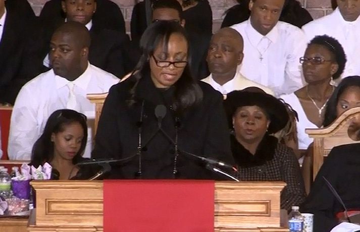 Myndir frá minningarathöfn Whitney Houston 19. febrúar 2012 10:45 myndir/cover media Meðfylgjandi myndir voru teknar í minningarathöfn Whitney Houston í gær. Maðurinn sem hún var gift í 15 ár, Bobby Brown, strunsaði út stuttu eftir að athöfnin, sem var falleg og tilfinningaþrungin, hófst því fylgdarliði hans bauðst ekki að sitja fremst í kirkjunni.Skoða myndirnar hér. Síðar sendi Bobby frá sér fréttatilkynningu um hvað hann var gríðarlega ósáttur hvernig komið var fram við fjölskyldu hans en kona hans grét fyrir utan kirkjuna eins og sjá má á myndunum. Þá kvartaði hann yfir því að hafa ekki fengið að hitta dóttur sína, Bobbi Kristinu, en Whitney fékk forræðið yfir stúlkunni eftir að þau skildu 2007. Kærasti Whitney, Ray J, teygði sig hágrátandi eftir líkkistunni og snerti hana. Þá hélt Kevin Costner aftur tárunum í minningarræðu sinni um samband hans og Whitney en þau urðu góðir vinir eftir að þau léku saman í kvikmyndinni Bodygard. Aretha Franklin meldaði sig veika en til stóð að hún myndi syngja við athöfnina. Alicia Keys grét á meðan hún söng. Þá söng Stevie Wonder og minntist söngkonunnar með fallegum orðum.myndir/cover media Skroll-Lífið Mest lesið Meðalmennskan plagar Brján Gagnrýni Aldrei of seint að prófa sig áfram Tíska og hönnun Kynslóðabilið kom í ljós þegar umræðan beindist að blautbolakeppni Lífið Hótelstjóri Hótels Tindastóls er allur Bíó og sjónvarp Skein skært í sögulegum gleðikonukjól Tíska og hönnun Hvað þýðir „six-seven“? Lífið Troðningur á yfirfullri opnun: „Þetta var svolítið kreisí“ Lífið Fékk lífið til baka á korteri eftir tólf ár af sársauka Lífið Smáforrit til að deila heimilisverkum: „Fæ þrjú stig fyrir að þurrka af á heimilinu“ Lífið „Fallegasti drengur í heimi“ er látinn Bíó og sjónvarp Fleiri fréttir Hvað þýðir „six-seven“? Smáforrit til að deila heimilisverkum: „Fæ þrjú stig fyrir að þurrka af á heimilinu“ Kynslóðabilið kom í ljós þegar umræðan beindist að blautbolakeppni Ljúffengar banana- og kakóbollakökur í nestisboxið Troðningur á yfirfullri opnun: „Þetta var svolítið kreisí“ Pétur Kr. og Ingibjörg selja 270 fermetra eign við Ægisíðu Barist upp á líf og dauða „Get ekki hætt að hugsa um bragðarefinn sem hann pantaði“ Langþráður draumur verður að veruleika Samsæriskenningar notaðar sem stjórntæki Stjörnulífið: „Dagur sem mun aldrei gleymast“ Gisti hálft ár á sófum hjá bekkjarfélögum Betra að vera blankur nemi í New York Kynlífið innantómt með öðrum en fyrrverandi Fékk lífið til baka á korteri eftir tólf ár af sársauka Staðfesta loks sambandið Einar og Milla skírðu drenginn Með blæðandi hjarta og ber örin með stolti Krakkatían: Kvennafrídagurinn, Ólsen ólsen og málsháttur Áslaug Arna kom alblóðug inn í sjúkratjaldið Upplifði stöðugan ótta við helvíti í samfélagi múslima í Svíþjóð Getur alls ekki verið einn Fréttatía vikunnar: Ungfrú Ísland Teen, Louvre-þjófnaður og hrukkur Myndaveisla: Troðfullur miðbær á kvennafrídegi Borgarfulltrúi bjargaði stolnum barnavagni „Segið að ég sé samkynhneigður en ekki ljúga með hitt“ Notaði ákveðinn mat til að hjálpa í krabbameinsmeðferðinni „Konu“ tónleikar í Hvolnum á Hvolsvelli í kvöld Kim Kardashian greindist með heilagúlp Stjörnurnar þökkuðu Vigdísi Sjá meira