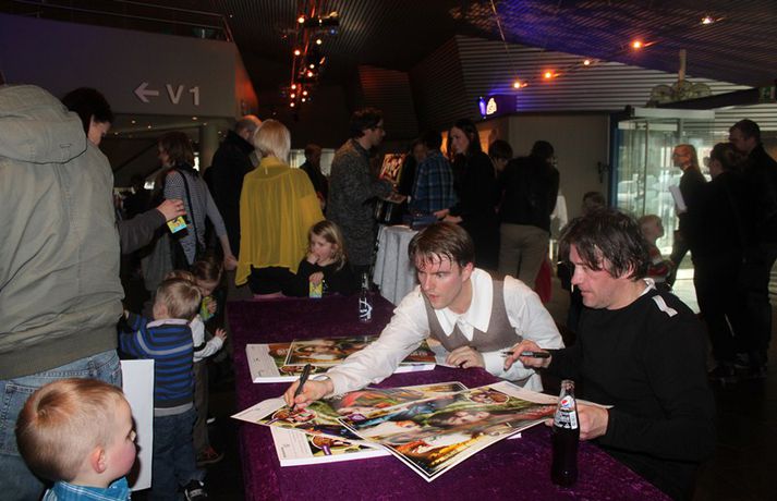Leikarinn Gói, sem heitir réttu nafni, Guðjón Davíð Karlsson og kollegi hans, leikarinn Þröstur Leo Gunnarsson, vöktu mikla lukku áhorfenda á frumsýningu leikverksins Gói og Baunagrasið á litla sviðinu í Borgarleikhúsinu í dag. Félagarnir héldu börnunum og ekki síður fullorðna fólkinu við efnið í þessari frábæru barnasýningu. Meðfylgjandi myndir voru teknar fyrir og eftir sýninguna.Sjá meira um Góa og Baunagrasið hér.