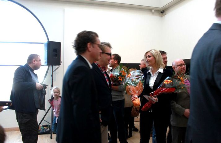 Meðfylgjandi myndir voru teknar í dag í Gerðasafni í Kópavogi við afhendingu blaðamannaverðlauna ársins. Eins og sjá má á myndunum var andrúmsloftið afskaplega gott og margt um manninn.Helga Arnardóttir, fréttamaður Stöðvar 2, hlaut blaðamannaverðlaun fyrir umfjöllun ársins en hún fjallaði ítarlega um Geirfinnsmálið í Íslandi í dag.Hér má sjá meira um verðlaunaafhendinguna.myndir/ellý ármanns