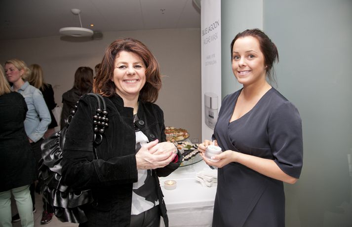 Meðfylgjandi myndir voru teknar þegar nýr Blue Lagoon þörungamaski var kynntur fimmtudaginn 10. maí í Blue Lagoon Spa í Hreyfingu. Fjöldi kvenna kynnti sér maskann sem nærir, lyftir og veitir húðinni aukinn ljóma. „Maskinn er spennandi nýjung í Blue Lagoon húðvörulínunni og hefur vörunnar verið beðið með eftirvæntingu. Jákvæð áhrif Bláa Lónsins á húðina hafa verið þekkt allt frá því að fólk hóf að baða í Bláa Lóninu. Áhrif kísilsins á húðina eru þekkt og þá töluðu þeir sem fyrstir voru til að baða í Lóninu eftir myndun þess einnig um það að áhrifin væru enn betri ef sjá mátti grænan lit í kíslinum. Rannsóknir leiddu síðar í ljós að þarna voru á ferðinni sjaldgæfar þörungategundir sem hafa virkni gegn öldrun húðarinnar. Rannsóknir leiddu til þróunar á þörungamaska sem eingöngu var fáanlegur fyrir spa gesti Bláa Lónsins og er hann afhentur frosinn í Lóninu sjálfu," sagði Ása Brynjólfsdóttir, rannsókna- og þróunarstjóri Bláa Lónsins spurð um nýja þörungamaskann.Blue Lagoon á Facebook.