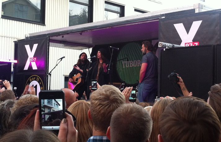 Patti Smith tróð upp með Russell Crowe 18. ágúst 2012 22:30 Russell Crowe hélt tónleika í portinu á vak við Ellefuna ásamt hljómsveit á Menningarnæturtónleikum X-977 í kvöld. Ekki nóg með að leikarinn dásamaði land og þjóð heldur birtist vinkona hans, söngkonan Patti Smith á sviðinu öllum að óvörum og söng lagið Because the night við gríðarlegan fögnuð viðstaddra. Patti Smith virðist hafa mætt óvænt og tók Because the night við gríðarlegan fögnuð. Þeir Russell og vinur hans, Doyle, fluttu mörg lög. Góður rómur varð gerður að þeim félögum en þeir þóttu þéttir og skemmtilegir á sviði. Russell lék á alls oddi. Hann talaði mikið um Ísland, fólkið og landslagið, en nánar verður rætt við kappann í viðtali á Stöð 2 á morgun. Skroll-Lífið Mest lesið Breytti um nafn eftir djúpa ástarsorg Tónlist Sigurjón og Sóley gjörbreyttu eldhúsinu með einstakri útkomu Lífið Fasteignasalar og ofurskvísur í Októberfest stemningu Lífið Komu höndum yfir fæðingarvottorðið og ljóstruðu upp um fæðinguna Bíó og sjónvarp Eitt glæsilegasta hús Reykjavíkur til sölu Lífið Sviti, mjólk og hóstakast eftir að hafa manað hvor annan Lífið Nýir réttir Serrano aðgengilegir í LifeTrack appinu Lífið samstarf Elegant eftirréttur sem hlýjar um hjartarætur Matur Cecilie tekur við af Auði Menning Sjóðheitt fyrir snjóstorm Tíska og hönnun Fleiri fréttir Breytti um nafn eftir djúpa ástarsorg Spila jólalög allan sólarhringinn fram að jólum Gervigreindarsvikarar reyna að hagnast á íslenskum stjörnum Katrín Odds og Þorgerður ástfangnar á frumsýningu Englar Birnis frumsýndir og heimildarmynd á leiðinni Sleppti tökunum á ástarsorgarplötu aldarinnar Lofar hlustendum jákvæðri og skemmtilegri stemmingu Þetta eru bestu lög 21. aldarinnar „Þetta er ömurleg fjárhagsleg ákvörðun“ Borgarstjóri og bombur í brjálaðri GusGus-gleði Sama hvað öllum finnst, nema mömmu og pabba Íslenskar stjörnur heiðra Bítlana Frumsýning á Vísi: Iceguys trylla þjóðina enn og aftur í nýju myndbandi Baunar á kókaða söngkonu fyrir baktal Djúpt snortinn yfir viðbrögðum samfélagsins Hneig niður í miðju lagi Joy Orbison treður upp í Austurbæjarbíói Samdi lag um ást sína á RIFF Söguleg rappveisla í Laugardalnum Laufey treður upp með Justin Bieber Árný Margrét ómaði á tískupöllum í New York Írar sniðganga Eurovision taki Ísrael þátt „Algjörlega út úr kortinu fyrir íslenskan listamann“ Uppselt á tónleika Laufeyjar og aukatónleikum bætt við Heiðra Arvo Pärt í Landakotskirkju Troðfull Þorlákskirkja minntist Karls Sighvatssonar Einvalalið kemur fram á Karlsvöku Laufey Lín endar Evróputúrinn á Íslandi Fjarsambandinu loksins lokið Frumsýning á Vísi: Fyrsta lag Valdimars í sjö ár og liðsmenn eru Bieber ævinlega þakklátir Sjá meira
