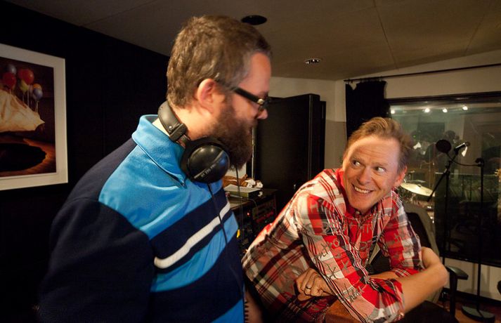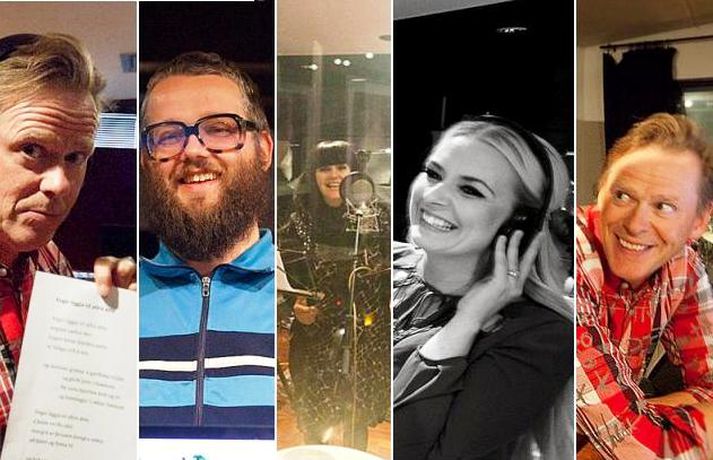 Meðfylgjandi myndir voru teknar í upptökuverinu Stúdíó Sýrland í gær þar sem úrvalshópur söngvara tók upp glænýja útgáfu af lagi Ellýjar Vilhjálms Vegir liggja til allra átta. Tilefnið er minningartónleikar um Ellý, þar sem ferill hennar verður rifjaður upp á ógleymanlegan hátt, sem haldnir verða í Höllinni 13. október næstkomandi.Sjá meira um tónleikana hér. Sjá má Björgvin Halldórsson, Stefán Hilmarsson, Guðrúnu Gunnarsdóttur, Eivöru Pálsdóttur, Ragnhildi Gísladóttur og Samúel J. Samúelsson sem stjórnaði upptökunni í myndasafni.