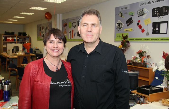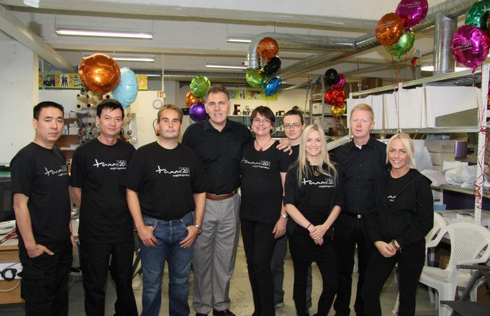 "Tanni er í dag 10 manna fyrirtæki og veltan um 150 miljónir krónur á ári“ segir Guðjón Sigurbjartsson framkvæmdastjóri en Guðjón og Guðrún Barbara Tryggvadóttir kona hans hafa staðið bak við Tanna sem er tuttugu ára gamalt fyrirtæki sem einblínir á sérmerktar auglýsingavörur eins og fatnað, penna, derhúfur og fleira. Meðfylgjandi myndir voru teknar þegar Tanni fagnaði 20 ára afmæli á dögunum.