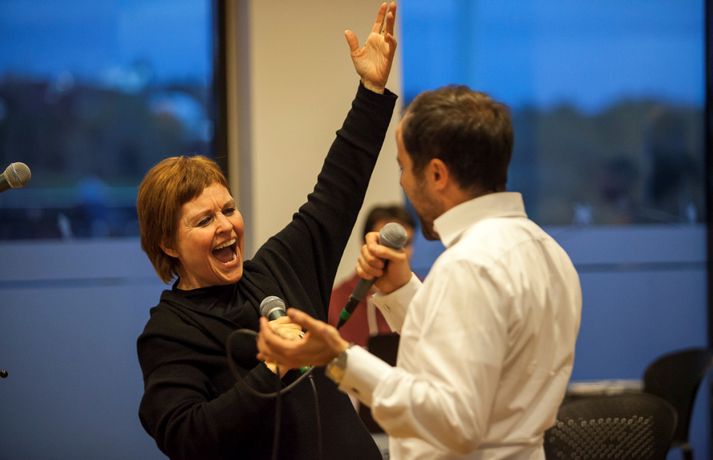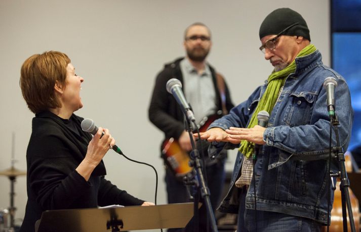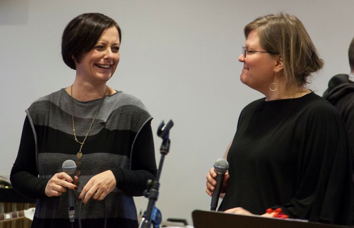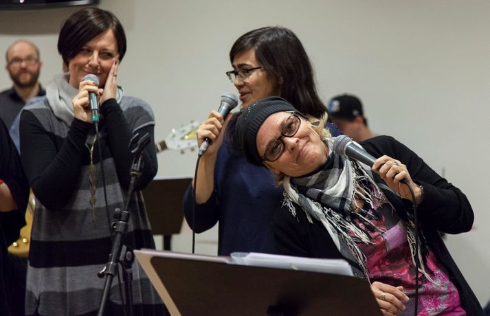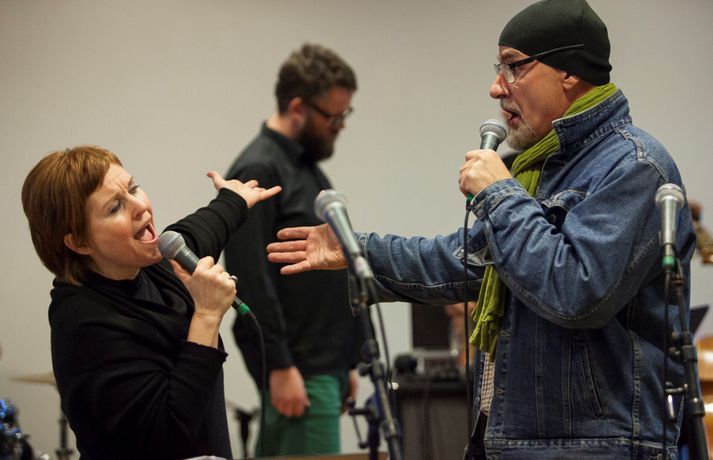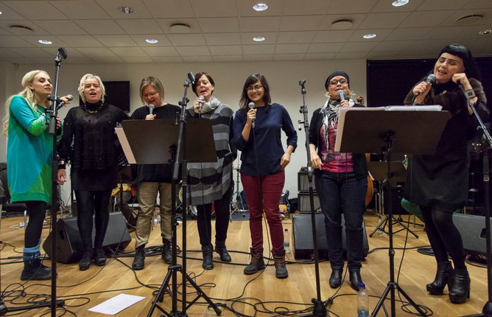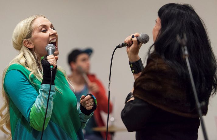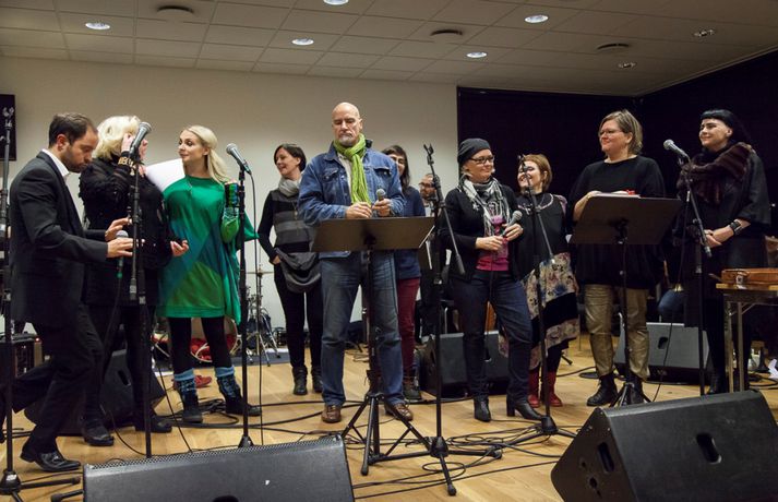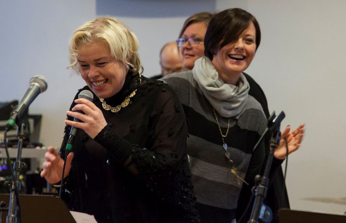 Gríðarlega góð stemning var á lokakvöldæfingu fyrir minningartónleika Ellýjar Vilhjálms sem fram fara annað kvöld í Laugardalshöllinni sem verður breytt í tímavél þar sem gestir munu eiga kost á því að hverfa aftur til 7. áratugarins eina kvöldstund. Eins og sjá má á myndunum var fjör á æfingunni.Söngkonurnar Ellen Kristjánsdóttir og Kristjana Stefánsdóttir slá á létta strengi.Söngkonan Andrea Gylfadóttir.Sigga, Diddú, Kristjana og Ragga verða í Laugardalshöllinni annað kvöld.