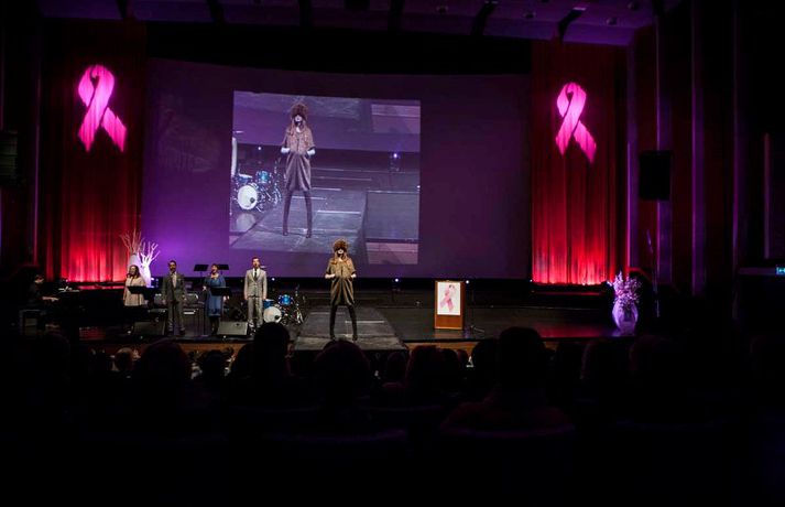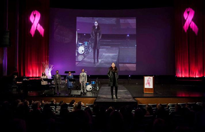 "Látum gleðina taka völd og skemmtum okkur saman eina kvöldstund," var yfirskrift konukvöldsins sem Krabbameinsfélagið hélt í Háskólabíó í gærkvöldi. Eins og sjá má á myndunum var andrúmsloftið vægast sagt frábært. Dagskráin hófst með fölbleikum fordrykk áður en konurnar nutu þess að horfa á skemmtiatriðin sem voru ekki af verri endanum. Biggi Hilmars og hljómsveit, Védís Hervör, Margrét Eir, Sigga Beinteins, Diddú, Ari Eldjárn og Pörupiltarnir gerðu góða hluti. Þá var tískusýning íslenskra hönnuða frá Fatahönnunarfélagi Íslands og fleira skemmtilegt á boðstólnum og að ekki sé minnst á veglegar veitingarnar.Kynntu þér heilsuboðorðin á Krabb.is.Ísland í dag var á staðnum. Sjáðu konukvöld Krabbameinsfélagsins í Háskólabíó á Stöð 2 næsta mánudag (29.10.) - strax að loknum kvöldfréttum.Myndir/Jorri og LífiðSvo var tískusýning íslenskra hönnuða frá fatahönnunarfélagi Íslands.Tónlistarmaðurinn Biggi Hilmars og hljómsveit fluttu nokkur lög.Bleikur litur var áberandi.Andrúmsloftið var frábært á konukvöldinu í gær.Þessar stúlkur ljómuðu.