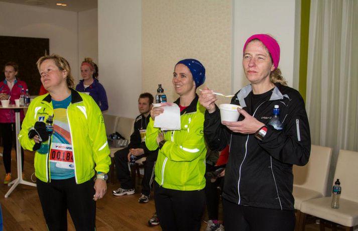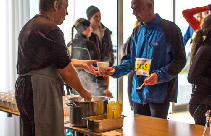 Veitingastaðurinn Nauthóll hélt fyrsta árlega Nauthólshlaupið fyrir viku. Boðið var upp á tvær vegalengdir, 5 og 10 km. Sjaldan hefur veðrið verið eins slæmt og þennan laugardag en það stoppaði ekki yfir hundrað hlaupagarpa til að taka þátt. Þátttaka var ókeypis og bauð Nauthóll upp á heita gulrótarsúpu að loknu hlaupi.Nauthóll.is.Hlaupararnir voru verðlaunaðir með íþróttadrykk.Veitingahúsið Nauthóll gaf hlaupurunum heita holla súpu.Þær voru glaðar að hlaupi loknu þrátt fyrir rigninguna.Farið yfir tímann.Gulrótarsúpan var hressandi og allir kátir.