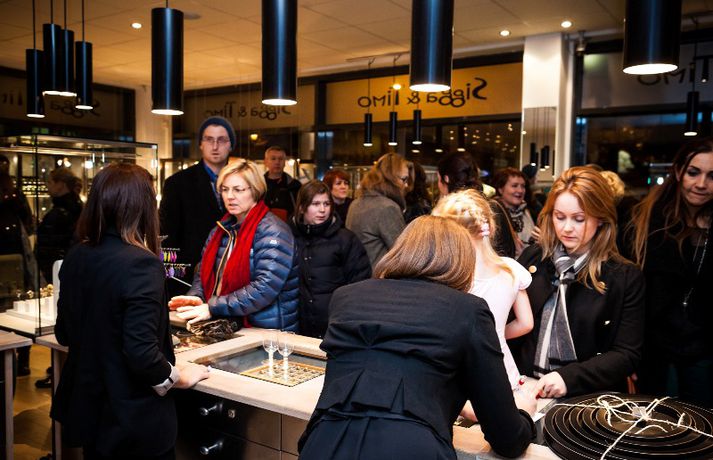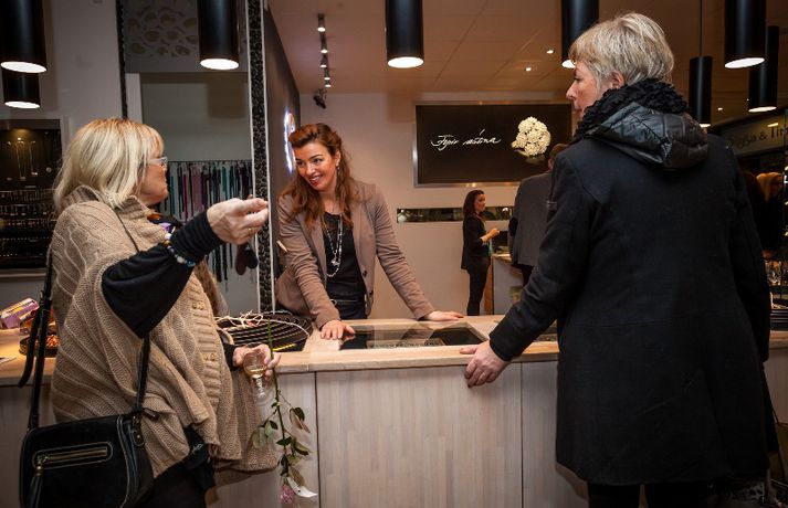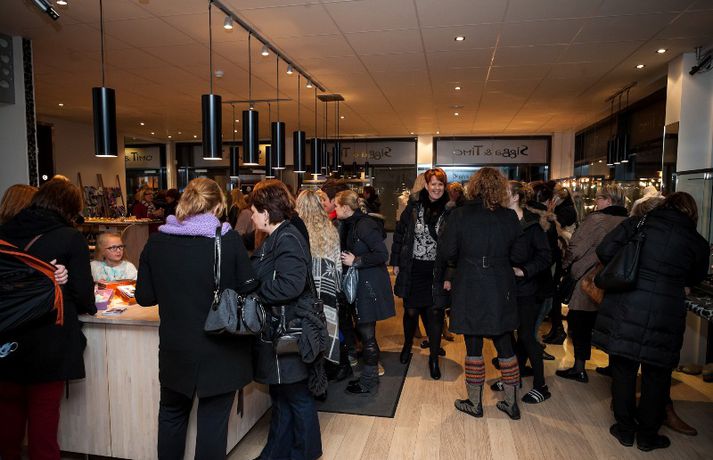 Nítján ára afmæli skartgripaverslunar Siggu og Timo í Hafnarfirði var fangað á dögunum. Eins og sjá má á myndunum var gleðin við völd og fjölmennt í afmælinu.Siggaogtimo.isMyndir/Ólafur ÞórissonGleðin ríkti svo sannarlega í Hafnarfirðinum.Bergþóra, Þórey og ónefndur herramaður.Sigríður Anna Sigurðardóttir eða Sigga eins og hún er kölluð við búðarborðið.
