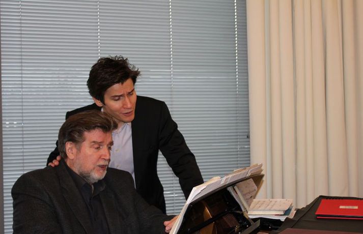Meðfylgjandi myndir voru teknar í gær þegar Garðar Thór Cortes, Garðar Cortes og Valgerður Guðna komu saman að æfa fyrir Nýárstónleika Garðars Thórs í Grafarvogskirkju þann 30. desember næstkomandi og í Hofi þann 5. janúar. Friðrik Karlsson og Óskar Einarsson sem stýra tónlistinni en þeir voru mættir á æfinguna til að aðstoða söngvarana.Miðasala er hafin á tónleikanna og hægt að næla sér í miða í Grafarvogskirkju hér https://midi.is/tonleikar/1/7344/ en á tónleikanna á Akureyri hér https://midi.is/tonleikar/1/7345/. Feðgarnir góðir saman.