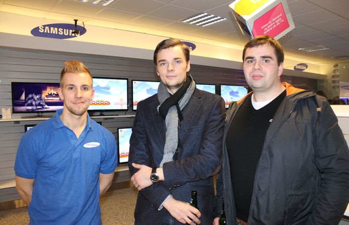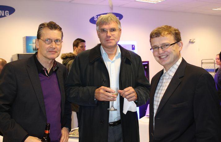 Það var glatt á hjalla í frumsýningarteiti í Samsungsetrinu í gærkvöld en þar var kynnt hin nýja og byltingarkennda kynslóð Nintendo leikjatölvunnar Wii U. Þá var einnig frumsýnt hágæða 75 tommu LED sjónvarp frá Samsung sem er stærsta fjöldaframleidda sjónvarpið í heiminum. Fjöldi gesta mættu í Samsungsetrið til að kíkja á græjurnar og njóta góðra veitinga. Eva Dögg Sigurgeirsdóttir, Margrét Mogensen og Arndís Thorarensen. Þær útskrifuðust saman úr MBA í Háskólanum í Reykjavík.Einar Bárða og Pálmi Guðmunds í frábærum félagsskap.