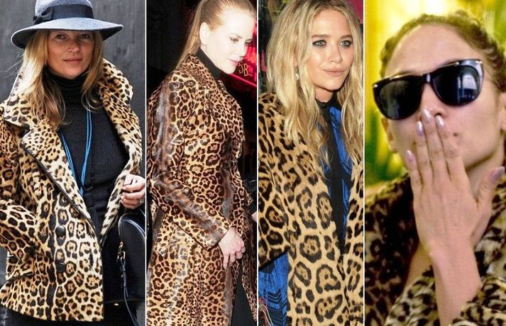 Svona af því að breska fyrirsætan Kate Moss komst í heimsfréttirnar af því að hún var klædd í hlébarðamynstraða kápu þegar hún gekk um götur Lundúna í síðustu viku ákváðum við á Lífinu að skoða fleiri þekktar konur sem kusu einnig að klæðast fatnaði með sama mynstri. Það verður seint sagt að mynstrið detti úr tísku - eða hvað? Kate Moss klæddist þessum flotta jakka í Lundúnum í vikunni.Jennifer Lopez tekur sig vel út í þessari kápu.Nicole Kidman smart að vanda.Olsen tvíburarnir eru alltaf smart.