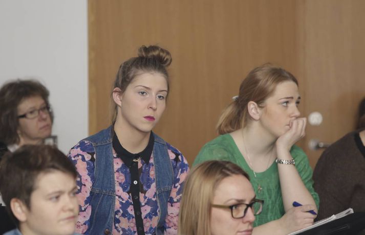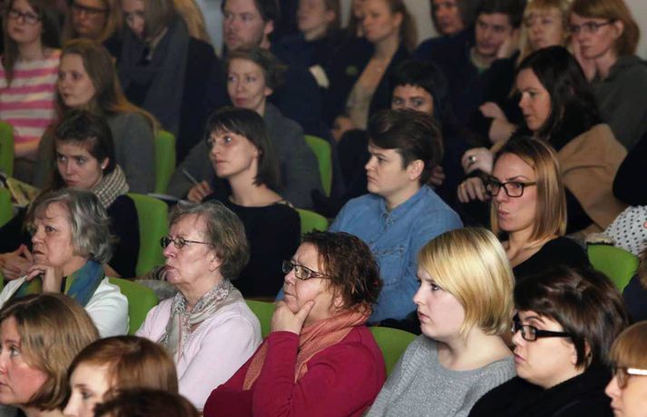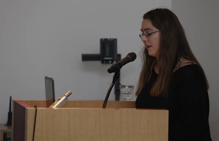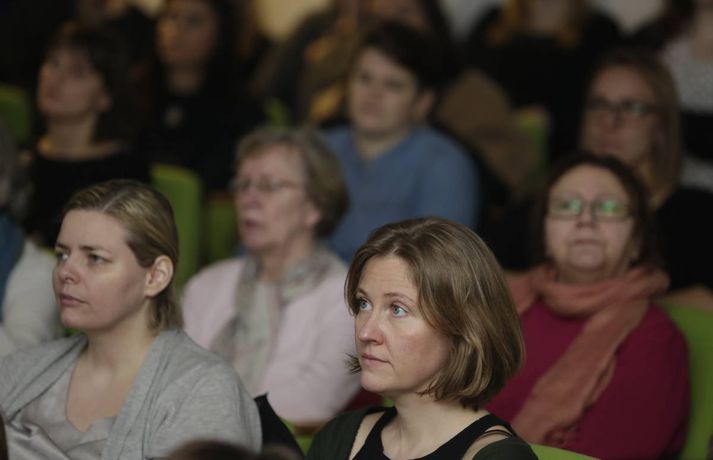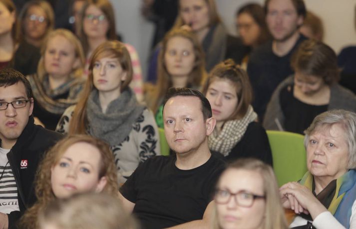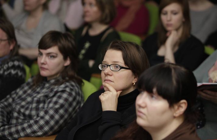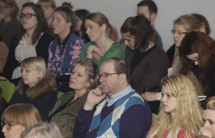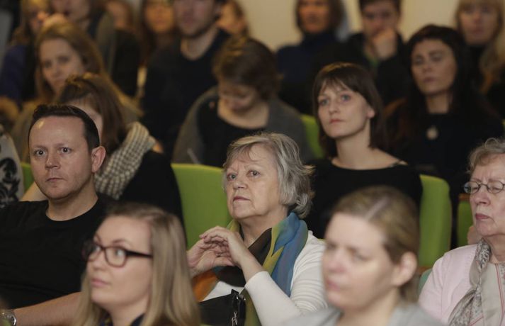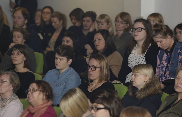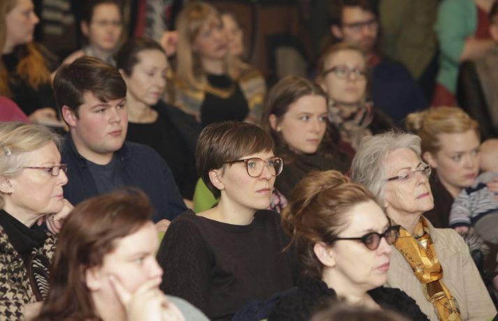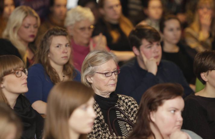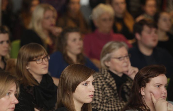 Þéttsetið var í fyrirlestrarsal Þjóðminjasafnsins í hádeginu í dag á fyrirlestri Öldu Bjarkar Valdimarsdóttur, doktorsnema í bókmenntafræði við HÍ sem bar yfirskriftina „„Ég er ekki þunn" Tobba Marínós, kvenfrelsisumræðan og íslensk skvísumenning".Eins og segir í tilkynningu viðburðarins sem var á vegum Rannsóknarstofu í kvenna- og kynjafræðum:„Tobba Marinós er vel þekktur bloggari og sjónvarpskona, auk þess að vera höfundur tveggja skvísusagna og sjálfshjálparbókar um konur og mannasiði. Hún er áhrifamikill talsmaður póstfemínisma í íslenskri menningu og í viðtökum á verkum hennar má greina djúpstæð átök milli hennar og þeirra sem aðhyllast annarri bylgju femínisma. Í greininni er stuðst við kenningar Beverley Skeggs og femíníska viðtökufræði Jóhönnu Russ og skoðað hvernig Tobba hefur verið gagnrýnd fyrir viðhorf sín, útlit og skrif."Instagram/Ellýhttps://Rikk.hi.isKvenleg viðfangsefni og afþreying kvenna voru til umfjöllunar hjá Öldu í dag.Ljósmyndir/ValliAlda Björk Valdimarsdóttir, doktorsnemi í bókmenntafræði við HÍ,Karl Sigurðsson, unnusti Tobbu, mætti ásamt móður sinni.Tobba Marínós, höfundur skvísusagna og sjálfshjálparbókarinnar Dömusiðir mætti ásamt móður sinni og ömmu á fyrirlesturinn um sjálfa sig.