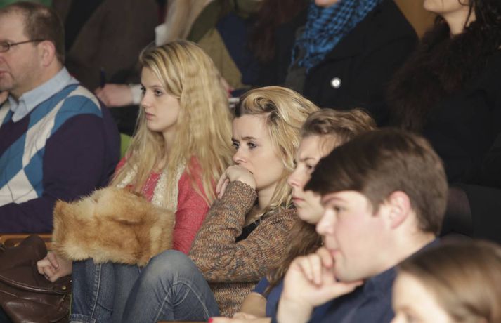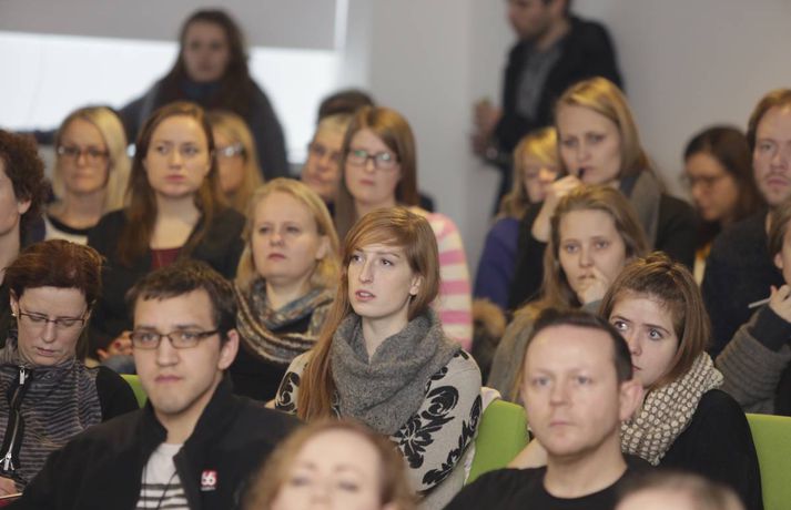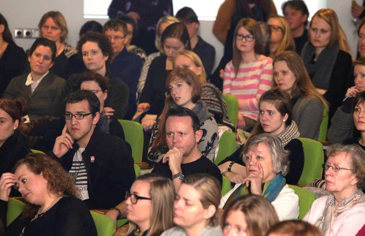 Tengdó, mamma og amma mættu til að styðja Tobbu Ellý Ármanns skrifar 18. janúar 2013 13:45 Þéttsetið var í fyrirlestrarsal Þjóðminjasafnsins í hádeginu í dag á fyrirlestri Öldu Bjarkar Valdimarsdóttur, doktorsnema í bókmenntafræði við HÍ sem bar yfirskriftina „„Ég er ekki þunn" Tobba Marínós, kvenfrelsisumræðan og íslensk skvísumenning".Eins og segir í tilkynningu viðburðarins sem var á vegum Rannsóknarstofu í kvenna- og kynjafræðum:„Tobba Marinós er vel þekktur bloggari og sjónvarpskona, auk þess að vera höfundur tveggja skvísusagna og sjálfshjálparbókar um konur og mannasiði. Hún er áhrifamikill talsmaður póstfemínisma í íslenskri menningu og í viðtökum á verkum hennar má greina djúpstæð átök milli hennar og þeirra sem aðhyllast annarri bylgju femínisma. Í greininni er stuðst við kenningar Beverley Skeggs og femíníska viðtökufræði Jóhönnu Russ og skoðað hvernig Tobba hefur verið gagnrýnd fyrir viðhorf sín, útlit og skrif."Instagram/Ellýhttps://Rikk.hi.isKvenleg viðfangsefni og afþreying kvenna voru til umfjöllunar hjá Öldu í dag.Ljósmyndir/ValliAlda Björk Valdimarsdóttir, doktorsnemi í bókmenntafræði við HÍ,Karl Sigurðsson, unnusti Tobbu, mætti ásamt móður sinni.Tobba Marínós, höfundur skvísusagna og sjálfshjálparbókarinnar Dömusiðir mætti ásamt móður sinni og ömmu á fyrirlesturinn um sjálfa sig. Skroll-Lífið Mest lesið Fasteignasalar og ofurskvísur í Októberfest stemningu Lífið Eitt glæsilegasta hús Reykjavíkur til sölu Lífið Bragðgott quesadilla á einni plötu Matur Fimm góðar um vonda færð, snjóstorma og ærandi innilokunarkennd Bíó og sjónvarp Meðalmennskan plagar Brján Gagnrýni Fékk lífið til baka á korteri eftir tólf ár af sársauka Lífið Troðningur á yfirfullri opnun: „Þetta var svolítið kreisí“ Lífið Hvað þýðir „six-seven“? Lífið Sjóðheitt fyrir snjóstorm Tíska og hönnun Vafðist tunga um tönn þegar Bond bar á góma Bíó og sjónvarp Fleiri fréttir Fasteignasalar og ofurskvísur í Októberfest stemningu Eitt glæsilegasta hús Reykjavíkur til sölu „Þetta er það fallegasta sem einhver hefur sagt um mig“ Hvað þýðir „six-seven“? Smáforrit til að deila heimilisverkum: „Fæ þrjú stig fyrir að þurrka af á heimilinu“ Kynslóðabilið kom í ljós þegar umræðan beindist að blautbolakeppni Ljúffengar banana- og kakóbollakökur í nestisboxið Troðningur á yfirfullri opnun: „Þetta var svolítið kreisí“ Pétur Kr. og Ingibjörg selja 270 fermetra eign við Ægisíðu Barist upp á líf og dauða „Get ekki hætt að hugsa um bragðarefinn sem hann pantaði“ Langþráður draumur verður að veruleika Samsæriskenningar notaðar sem stjórntæki Stjörnulífið: „Dagur sem mun aldrei gleymast“ Gisti hálft ár á sófum hjá bekkjarfélögum Betra að vera blankur nemi í New York Kynlífið innantómt með öðrum en fyrrverandi Fékk lífið til baka á korteri eftir tólf ár af sársauka Staðfesta loks sambandið Einar og Milla skírðu drenginn Með blæðandi hjarta og ber örin með stolti Krakkatían: Kvennafrídagurinn, Ólsen ólsen og málsháttur Áslaug Arna kom alblóðug inn í sjúkratjaldið Upplifði stöðugan ótta við helvíti í samfélagi múslima í Svíþjóð Getur alls ekki verið einn Fréttatía vikunnar: Ungfrú Ísland Teen, Louvre-þjófnaður og hrukkur Myndaveisla: Troðfullur miðbær á kvennafrídegi Borgarfulltrúi bjargaði stolnum barnavagni „Segið að ég sé samkynhneigður en ekki ljúga með hitt“ Notaði ákveðinn mat til að hjálpa í krabbameinsmeðferðinni Sjá meira