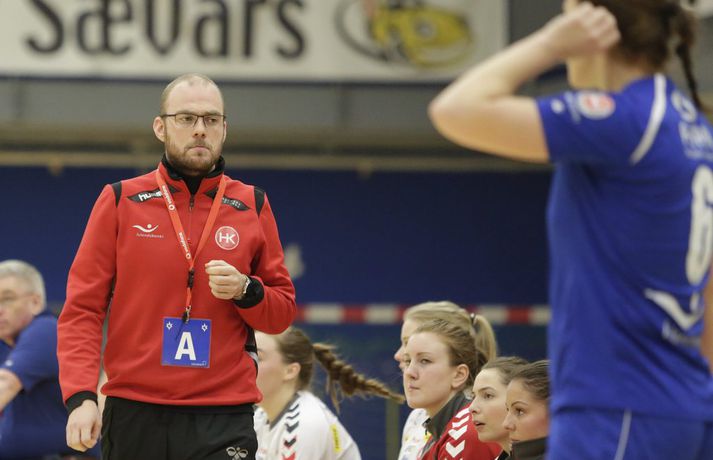 HK sló Stjörnuna úr leik í 16-liða úrslitum Símabikars kvenna í handbolta eftir hörskuspennandi viðureign í Garðabæ. Jafnræði var með liðunum í kvöld en HK skoraði þrjú a síðustu fjórum mörkum leiksins og tryggði sér þar með sigur á lokamínútunum. Leikurinn fór af stað með miklum látum og liðin voru búin að skora 8 mörk þegar tæpar 7 mínútur voru liðnar, staðan 4-4 og ágæt tilþrif sáust frá báðum liðum. Gestirnir, með Brynju Magnúsdóttur í miklum ham, náðu góðum kafla og komust tveimur mörkum yfir, 4-6. Þjálfari Stjörnunnar, Skúli Gunnsteinsson, fannst vænlegast að taka leikhlé og þrumaði yfir sínum leikmönnum. Ræðan frá Skúla virtist ekki hafa tilætluð áhrif og HK-stúlkur náðu fjögurra marka forystu þegar rúmar 10 mínútur voru til hálfleiks. Brynja hélt áfram að hrella vörn Stjörnukvenna og Arna Björk Almarsdóttir var mjög sterk á línunni hjá gestunum. Stjarnan spýtti í lófana og Rakel Dögg Bragadóttir fór að skjóta meira á markið, ásamt því að leika samherja sína uppi með góðum sendingum. Mörkin fóru að koma úr öllum áttum en svo fór að HK hafði eins marks forystu í hálfleik, 16-17. Stjörnukonur virtust koma ágætlega stemmdar til leiks eftir tesopann og þegar fimm mínútur voru liðnar af síðari hálfleik voru þær komnar yfir, 20-19. Heimastúlkur fóru að ganga betur út í stórskyttuna Brynju Magnúsdóttur og riðlaði það sóknarleik gestana til muna. Svo virtist sem þrautreyndir leikmenn Stjörnunnar ætluðu að klára ungt lið HK og þegar einungis átta mínútur lifðu af leiknum var Stjarnan með þriggja marka forystu, 30-27, og ekkert sem benti til annars en heimasigurs. Þá varð ótrúlegur viðsnúningur á leiknum. Leikmenn Stjörnunnar hentu frá sér boltanum trekk í trekk og ekki voru frekar vafasamir brottrekstrar að hjálpa þeim. Valgerður Ýr Þorsteinsdóttir fór gjörsamlega á kostum í liði HK á þessum kafla og skoraði þessi efnilegi leikmaður 5 af síðustu 7 mörkum HK í leiknum. Lokastaðan 32-34 fyrir HK sem er komið í 8-liða úrslit Símabikarsins en Stjörnukonur þurfa að bíta í það súra epli að detta úr keppninni á heimavelli sínum. Leikmenn HK spiluðu með hjartanu í kvöld og virtust einfaldlega hafa meiri áhuga á leiknum en leikmenn Stjörnunnar. Brynja Magnúsdóttir skoraði 11 mörk og var frábær í liði gestana. Áðurnefnd Valgerður Ýr spilaði gríðarlega vel, sérstaklega í síðari hálfleik og Arna var grimm á línunni. Það er valin leikmaður í hverju rúmi hjá Stjörnunni en hlutirnir voru ekki að falla með liðinu í kvöld. Markaskorun dreifist vel hjá liðinu en Rakel Dögg var þeirra best í kvöld með fín mörk og nokkrar gullfallegar línusendingar.Hilmar Guðlaugsson: Frábær vörn og markvarsla á ögurstundu Hilmar Guðlaugsson, þjálfari HK, brosti breitt í leikslok. „Við fáum rosalega sterka vörn og markvörslu hér í lokin á ögurstundu og þetta gerði gæfumuninn í kvöld. Markvarslan var ekkert sérstök lengstum í leiknum en datt svo inn á hárréttu augnabliki.“ Hilmar var alveg tilbúinn að skella einni bikar-klisju á blaðamann eftir leikinn. „Mér er alveg sama hvaða mótherja við fáum í næstu umferð. Það er bara meiriháttar gaman að vera komnar áfram í þessum bikar. Ég vil samt fá heimaleik í næstu umferð,“ sagði Hilmar kankvís í lokin.Valgerður Ýr: Nóg bensín á tanknum Valgerður Ýr Þorsteinsdóttir átti frábæran leik fyrir HK, ekki síst undir lok leiksins. „Það þýðir ekkert annað en að hafa nóg af bensíni á tanknum í svona leikjum og það höfum við svo sannarlega í kvöld.“ Valgerður braust hvað eftir annað í gegnum vörn Stjörnunnar í kvöld. „Það mæðir mikið á Brynju (Magnúsdóttur) í sókninni hjá okkur og þegar hún fer aðeins að þreytast þurfum við hinar að stíga upp og sýna hvað við getum. Ég er sátt við mína frammistöðu og auðvitað að vera komnar áfram í bikarnum.“Rakel Dögg: Ekkert samræmi í dómgæslunni Rakel Dögg Bragadóttir átti ágætan leik í kvöld fyrir Stjörnuna en var skiljanlega svekkt í leikslok. „Vörnin hættir að virka og markvarslan var ekki nógu góð heldur. Við byrjum að gera tæknifeila í sókninni og þær fá hraðaupphlaup í kjölfarið.“ Rakel var ekki sátt við dómgæsluna í leiknum. „Botninn dettur úr þessu hjá okkur þegar við förum að fá einhverjar óskiljanlegar brottvísanir á okkur. Mér fannst vanta allt samræmi í dómgæsluna í þessum leik.“