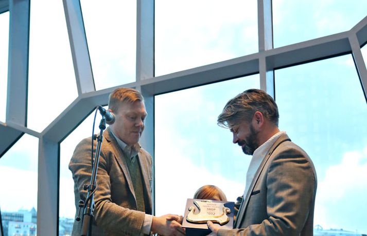 Meðfylgjandi myndir tók Daníel Rúnarsson ljósmyndari í Hörpu í gær þegar borgarstjóri Reykjavíkur, Jón Gnarr, afhenti Njarðarskjöld og Freyjusóma, ásamt yngsta syni sínum.Eggert feldskeri, til vinstri á mynd, hlaut viðurkenninguna Freyjusómi fyrir framsækin verslunarstörf árið 2012. Viðurkenningin er veitt til þeirrar verslunar sem þykir koma með hvað ferskastan andblæ í verslunarrekstur á ferðamannamarkaði í borginni.Sigurður Guðmundsson Kaupmaður fékk Njarðarskjöldinn. Sigurður rekur tvær Viking Store verslanir sem eru leiðandi ferðamanna-verslanir í miðborginni sem hafa veitt ferðamönnum úrvals þjónustu á liðnum árum. Að auki rekur hann ferðamannaverslunina á Laugaveginum, Made in Iceland, þar sem áhersla er lögð á íslenskar vörur.