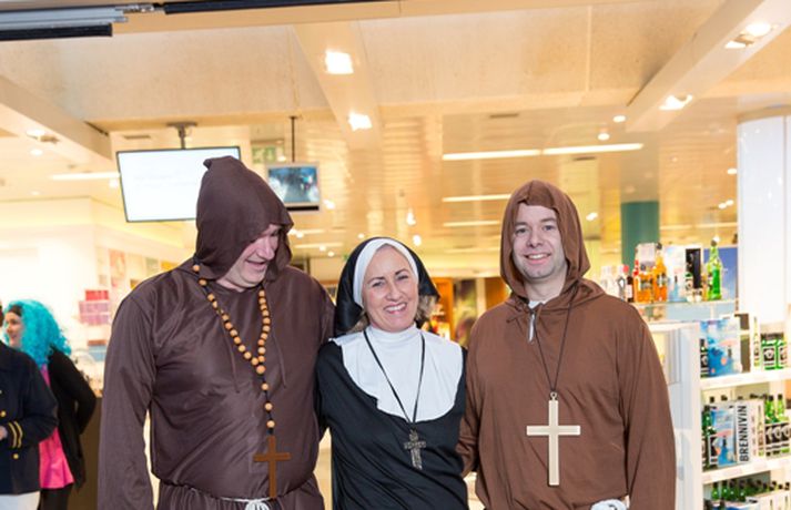 Fjör í Fríhöfninni Ellý Ármanns skrifar 13. febrúar 2013 13:45 Myndir/Óli Haukur Eins og sjá má á myndunum var mikið fjör í Fríhöfninni í dag þegar starfsmennirnir héldu upp á öskudaginn klæddir í skemmtilega grímubúninga. Óli Haukur ljósmyndari tók myndirnar.Í myndasafni hér fyrir neðan má skoða fleiri skemmtilegar myndir. Skroll-Lífið Mest lesið Fasteignasalar og ofurskvísur í Októberfest stemningu Lífið Eitt glæsilegasta hús Reykjavíkur til sölu Lífið Bragðgott quesadilla á einni plötu Matur Fimm góðar um vonda færð, snjóstorma og ærandi innilokunarkennd Bíó og sjónvarp Meðalmennskan plagar Brján Gagnrýni Troðningur á yfirfullri opnun: „Þetta var svolítið kreisí“ Lífið Hvað þýðir „six-seven“? Lífið Fékk lífið til baka á korteri eftir tólf ár af sársauka Lífið Vafðist tunga um tönn þegar Bond bar á góma Bíó og sjónvarp Sjóðheitt fyrir snjóstorm Tíska og hönnun Fleiri fréttir Fasteignasalar og ofurskvísur í Októberfest stemningu Eitt glæsilegasta hús Reykjavíkur til sölu „Þetta er það fallegasta sem einhver hefur sagt um mig“ Hvað þýðir „six-seven“? Smáforrit til að deila heimilisverkum: „Fæ þrjú stig fyrir að þurrka af á heimilinu“ Kynslóðabilið kom í ljós þegar umræðan beindist að blautbolakeppni Ljúffengar banana- og kakóbollakökur í nestisboxið Troðningur á yfirfullri opnun: „Þetta var svolítið kreisí“ Pétur Kr. og Ingibjörg selja 270 fermetra eign við Ægisíðu Barist upp á líf og dauða „Get ekki hætt að hugsa um bragðarefinn sem hann pantaði“ Langþráður draumur verður að veruleika Samsæriskenningar notaðar sem stjórntæki Stjörnulífið: „Dagur sem mun aldrei gleymast“ Gisti hálft ár á sófum hjá bekkjarfélögum Betra að vera blankur nemi í New York Kynlífið innantómt með öðrum en fyrrverandi Fékk lífið til baka á korteri eftir tólf ár af sársauka Staðfesta loks sambandið Einar og Milla skírðu drenginn Með blæðandi hjarta og ber örin með stolti Krakkatían: Kvennafrídagurinn, Ólsen ólsen og málsháttur Áslaug Arna kom alblóðug inn í sjúkratjaldið Upplifði stöðugan ótta við helvíti í samfélagi múslima í Svíþjóð Getur alls ekki verið einn Fréttatía vikunnar: Ungfrú Ísland Teen, Louvre-þjófnaður og hrukkur Myndaveisla: Troðfullur miðbær á kvennafrídegi Borgarfulltrúi bjargaði stolnum barnavagni „Segið að ég sé samkynhneigður en ekki ljúga með hitt“ Notaði ákveðinn mat til að hjálpa í krabbameinsmeðferðinni Sjá meira