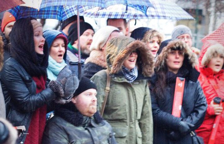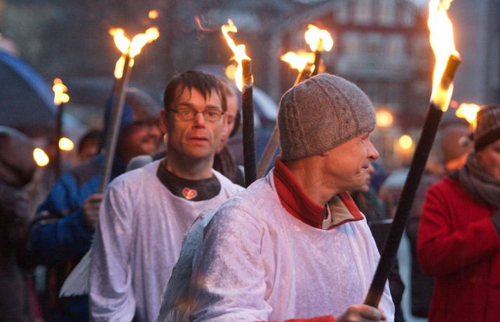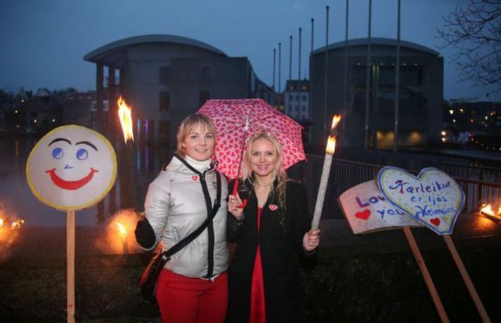 Hlý og falleg stemning var á Austurvelli í gær á hátíðinni Kærleikar eins og sjá má á myndunum sem Jón Ágúst Guðjónsson tók. Það var Bergljót Arnalds listakona sem stóð fyrir þessu lokaatriði Vetrarhátíðar.Vilborg Arna pólfari og Anna Bentína frá Stigamótum sögðu nokkur orð um kærleikann. Alda Brynja sá um andlitsmálun fyrir börn og svo stýrði Ásta Valdimarsdóttir hláturjóga. Það var mikið hlegið fyrir fram Alþingishúsið.Ástareldar voru kveiktir með kyndlum, eldgleypar spúðu eldi, Eyþór Ingi söng lagið Ég á líf af sinni alkunnu snilld. Leikhópurinn Perlan lék listir sínar og fjöldi fólks mætti á staðinn þrátt fyrir rigningu.Kórinn Vocal project söng við trumbuslátt og Lúðrasveitin Svanurinn lék fyrir kærleiksgöngu. Í gönguna mættu Sóla sögukona, Sönglistarnemar og nokkrir englar. Í lokin enduðu svo allir á því að fá sér heitt kakó við Iðnó.Eurovisionfararnir Örlygur Smári, Eyþór Ingi og Pétur.Vilborg Arna og Bergljót Arnalds.
