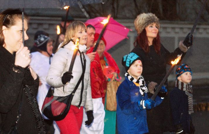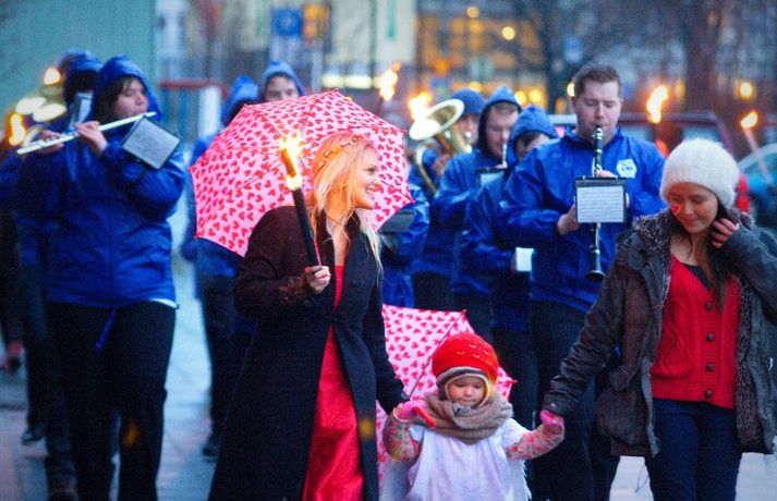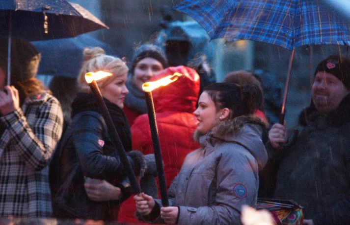 Hlý og falleg stemning var á Austurvelli Ellý Ármanns skrifar 11. febrúar 2013 19:45 Ljósmyndir/Jón Ágúst Guðjónsson. Hlý og falleg stemning var á Austurvelli í gær á hátíðinni Kærleikar eins og sjá má á myndunum sem Jón Ágúst Guðjónsson tók. Það var Bergljót Arnalds listakona sem stóð fyrir þessu lokaatriði Vetrarhátíðar.Vilborg Arna pólfari og Anna Bentína frá Stigamótum sögðu nokkur orð um kærleikann. Alda Brynja sá um andlitsmálun fyrir börn og svo stýrði Ásta Valdimarsdóttir hláturjóga. Það var mikið hlegið fyrir fram Alþingishúsið.Ástareldar voru kveiktir með kyndlum, eldgleypar spúðu eldi, Eyþór Ingi söng lagið Ég á líf af sinni alkunnu snilld. Leikhópurinn Perlan lék listir sínar og fjöldi fólks mætti á staðinn þrátt fyrir rigningu.Kórinn Vocal project söng við trumbuslátt og Lúðrasveitin Svanurinn lék fyrir kærleiksgöngu. Í gönguna mættu Sóla sögukona, Sönglistarnemar og nokkrir englar. Í lokin enduðu svo allir á því að fá sér heitt kakó við Iðnó.Eurovisionfararnir Örlygur Smári, Eyþór Ingi og Pétur.Vilborg Arna og Bergljót Arnalds. Skroll-Lífið Mest lesið Fasteignasalar og ofurskvísur í Októberfest stemningu Lífið Eitt glæsilegasta hús Reykjavíkur til sölu Lífið Bragðgott quesadilla á einni plötu Matur Fimm góðar um vonda færð, snjóstorma og ærandi innilokunarkennd Bíó og sjónvarp Meðalmennskan plagar Brján Gagnrýni Troðningur á yfirfullri opnun: „Þetta var svolítið kreisí“ Lífið Hvað þýðir „six-seven“? Lífið Fékk lífið til baka á korteri eftir tólf ár af sársauka Lífið Vafðist tunga um tönn þegar Bond bar á góma Bíó og sjónvarp Sjóðheitt fyrir snjóstorm Tíska og hönnun Fleiri fréttir Fasteignasalar og ofurskvísur í Októberfest stemningu Eitt glæsilegasta hús Reykjavíkur til sölu „Þetta er það fallegasta sem einhver hefur sagt um mig“ Hvað þýðir „six-seven“? Smáforrit til að deila heimilisverkum: „Fæ þrjú stig fyrir að þurrka af á heimilinu“ Kynslóðabilið kom í ljós þegar umræðan beindist að blautbolakeppni Ljúffengar banana- og kakóbollakökur í nestisboxið Troðningur á yfirfullri opnun: „Þetta var svolítið kreisí“ Pétur Kr. og Ingibjörg selja 270 fermetra eign við Ægisíðu Barist upp á líf og dauða „Get ekki hætt að hugsa um bragðarefinn sem hann pantaði“ Langþráður draumur verður að veruleika Samsæriskenningar notaðar sem stjórntæki Stjörnulífið: „Dagur sem mun aldrei gleymast“ Gisti hálft ár á sófum hjá bekkjarfélögum Betra að vera blankur nemi í New York Kynlífið innantómt með öðrum en fyrrverandi Fékk lífið til baka á korteri eftir tólf ár af sársauka Staðfesta loks sambandið Einar og Milla skírðu drenginn Með blæðandi hjarta og ber örin með stolti Krakkatían: Kvennafrídagurinn, Ólsen ólsen og málsháttur Áslaug Arna kom alblóðug inn í sjúkratjaldið Upplifði stöðugan ótta við helvíti í samfélagi múslima í Svíþjóð Getur alls ekki verið einn Fréttatía vikunnar: Ungfrú Ísland Teen, Louvre-þjófnaður og hrukkur Myndaveisla: Troðfullur miðbær á kvennafrídegi Borgarfulltrúi bjargaði stolnum barnavagni „Segið að ég sé samkynhneigður en ekki ljúga með hitt“ Notaði ákveðinn mat til að hjálpa í krabbameinsmeðferðinni Sjá meira