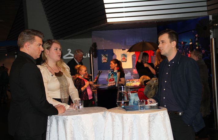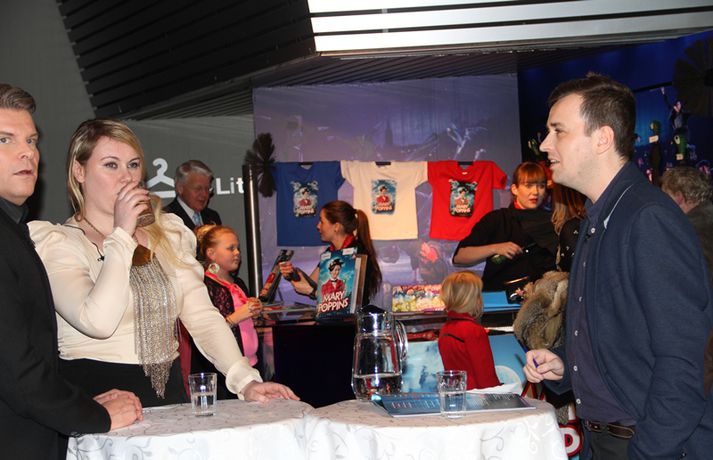 Frumsýningargestir fögnuðu ákaft í lok frumsýningar söngleiksins Mary Poppins í Borgarleikhúsinu í gærkvöldi en gestir voru sammála um að sýningin hafi verið frábær - töfrum líkust. Eins og sjá má á myndunum mættu fjölmargir þjóðþekktir einstaklingar á sýninguna.Sýningin er sú viðamesta og flóknasta sem Borgarleikhúsið hefur nokkru sinni ráðist í – mannmörg og krefjandi dans og söngatriði, hraðar og stórar sviðskiptingar, háskaleg flugatriði og ótal tæknibrellur. Alls eru 50 manns á sviði í Mary Poppins og mikill fjöldi á bak við tjöldin.Sagan um Mary Poppins hefur farið sigurför um heiminn og notið mikilla vinsælda og nú er söngleikurinn loksins sýndur á Íslandi og ljóst að margir bíða spenntir eftir því að kynnast konunni sem kann að gera lífið ögn skemmtilegra.Bergur Þór Ingólfsson leikstýrir verkinu og Gísli Rúnar Jónsson annast þýðingu á lausu og bundnu máli. Tónlistarstjóri er Agnar Már Magnússon en hann leiðir 11 manna hljómsveit sem spilar í sýningunni. Leikmyndahönnuður er Petr Hloušek, en hann hefur hannað fjölmargar stórsýningar víðsvegar um Evrópu og María Ólafsdóttir hannar búninga.Jóhanna Vigdís Arnardóttir og Guðjón Davíð Karlsson eru í hlutverkum Mary Poppins og sótarans Bert en þau stóðu sig frábærlega vægast sagt.Sakir umfangs uppfærslu söngleiksins er sýningafjöldi takmarkaður en sýnt verður eins þétt og unnt er fram á vor. Þegar er uppselt á 37 sýningar verksins og yfir 21.000 miðar seldir. Alls eru 10 sýningar til viðbótar í plani til loka leikárs að sögn upplýsingafulltrúa Borgarleikhússins.Emilía með pabba sínum Sindra Sindrasyni sjónvarpsmanni.Fólk á öllum aldri lét mynda sig fyrir framan Mary Poppins.Páll Óskar Hjálmtýsson og fögur fljóð.Jóhanna Sigurðardóttir með ömmubarninu sínu.Sigrún Ósk Kristjánsdóttir og Ragnhildur Steinunn Jónsdóttir fjölmiðlakonur og vinkonur.Ólafur Stephensen ritstjóri Fréttablaðsins skemmti sér vel með syni sínum.Forseti Íslands Ólafur Ragnar Grímsson og Eyþór, 6 ára, gáfu sér góðan tíma til að ræða saman um ýmis málefni.