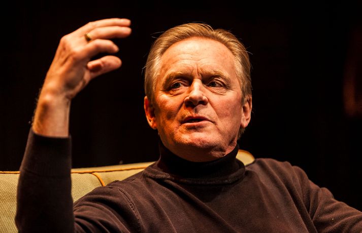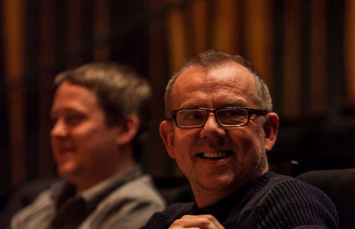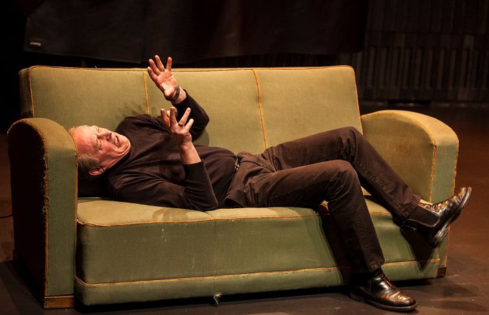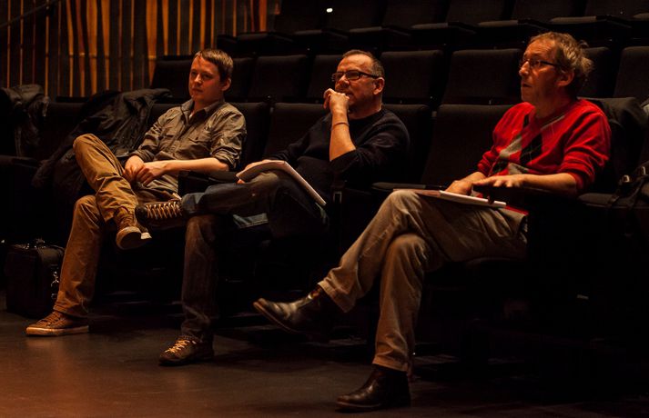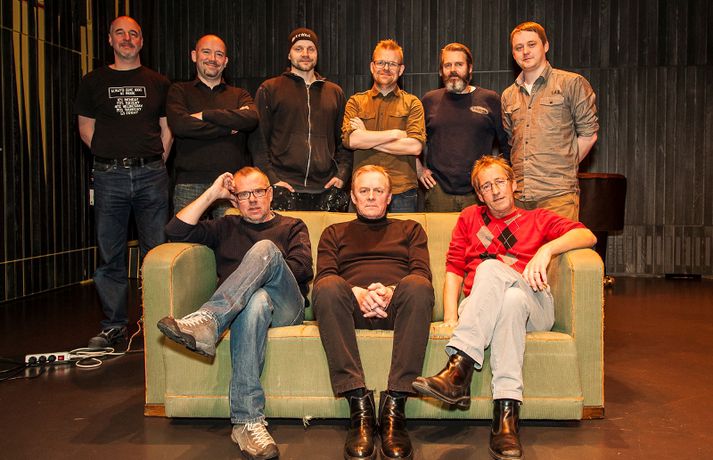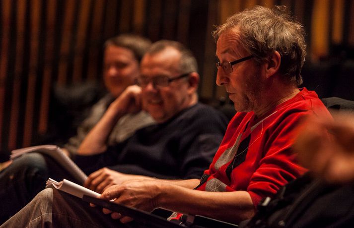 Meðfylgjandi myndir voru teknar á æfingu fyrir einleikinn Laddi lengir lífið sem frumsýndur verður í Hörpu 5. apríl. Um er að ræða frumsamið efni sem er enn í mótun þannig að enn er verkið að smella saman og verða til.Bæði fyndið og persónulegt "Við skemmtum okkur ótrúlega vel að horfa á þetta þannig að vonandi munu áhorfendur gera það lika. Þetta er rosalega fyndið en þarna er alvöru drama líka. Laddi er mjög persónulegur og hreinskilinn. Við höfum ekki við að bæta við sýningum. Nú er búið að færa sýninguna í stærri sal," segir Ísleifur Þórhallsson einn af framleiðendum spurður um verkið.Rainer ljósamaður, Þorvaldur Bjarni sem sér um tónlist og hljóðhönnun, Denni smíðar sviðsmyndina, Ísi og Beggi framleiðendur, Þórhallur sonur Ladda er allsherjar aðstoðarmaður. Kalli handritshöfundur, Laddi sjálfur og Siggi Sigurjóns leikstjóri. Það vantar Egil Eðvars hönnuð á myndina.Sjá meira um sýningu Ladda hér.