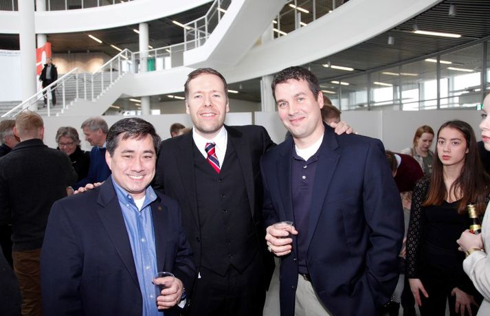 Meðfylgjandi myndir voru teknar í anddyri Háskólans í Reykjavík í gær þegar íslenska hátæknifyrirtækið Syndis sem sérhæfir sig í upplýsingaöryggi á Íslandi fagnaði upphafi starfseminnar.Ari Eldjárn mætti á staðinn og hressti mannskapinn við eins og honum einum er lagið.Sjá fleiri myndir hér:Myndir/Thorgeir Olafsson