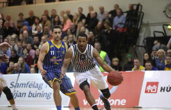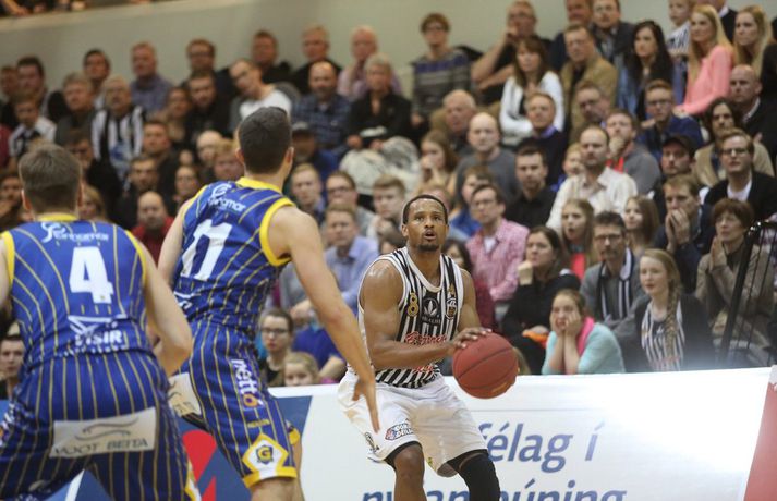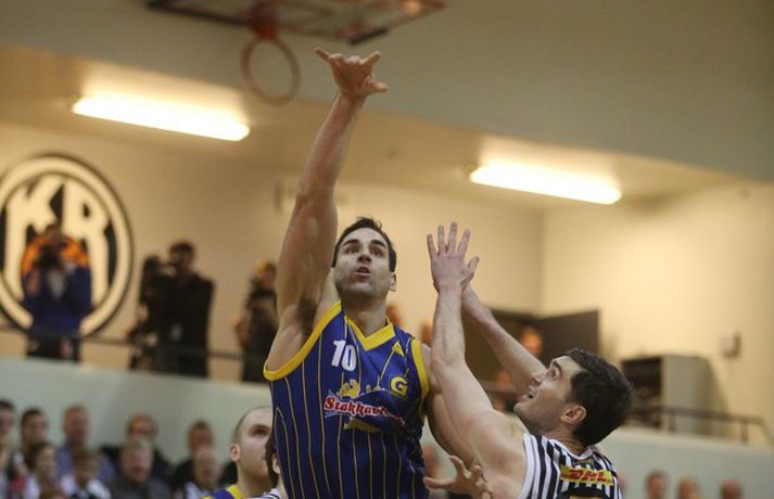 Deildarmeistarar Grindavíkur eru komnir í úrslitarimmu Dominos-deildar karla eftir magnaðan sigur á KR í hörkuleik vestur í bæ í kvöld. Það var frábær mæting og hörkustemning í DHL-höllinni í kvöld. KR byrjaði nokkuð fjörlega en Grindvíkingar tóku fljótt völdin. Náðu sjö stiga forskoti en KR kom til baka og minnkaði muninn í þrjú stig, 21-24, fyrir lok fyrsta leikhluta. Talsverður pirringur hjá KR-ingum út í dómarana sem þeim fannst dæma lítið. Fór svo að staðið var upp fyrir dómurunum er villa var dæmd á Grindvíkingana. Brynjar Þór Björnsson var í miklu stuði í liði KR en því miður fyrir heimamenn var ekki hægt að segja sömu sögu um aðra leikmenn. Það var enginn að fylgja Brynjari og Grindavík náði því tíu stiga forskoti. Sigurður Þorsteins skoraði góðar körfur, varði skot og frábær í vörninni. Broussard í miklu stuði og skoraði 16 stig í hálfleiknum en þá leiddu Grindvíkingar með 8 stigum, 39-47. KR hóf síðari hálfleikinn af miklum krafti og minnkaði muninn í eitt stig, 46-47. Þá fór að rigna þristum hjá hjá Grindvíkingum sem komu muninum upp í tíu stig. KR klóraði í bakkann og munurinn sex stig, 64-70, þegar einn leikhluti var eftir. KR kom til baka í leikhlutanum og náði að jafna, 85-85, er Richardson setti niður tvo þrista í röð. KR fékk tækifæri til að komast yfir en nýtti það ekki. Grindavík lét ekki koma sér úr jafnvægi og náði fjögurra stiga forskoti, 86-90, þegar mínúta var eftir af leiknum. KR náði ekki að brúa þetta bil á lokasekúndunum og Grindavík vann því frábæran sigur. Brynjar Þór var allt í öllu hjá KR í fyrri hálfleik en þeir Helgi Már og Richardson stigu upp í þeim síðari. Kristófer Acox og Martin áttu sína spretti. Broussard stórkostlegur hjá Grindavík. Zeglinski einnig magnaður. Jóhann Árni skoraði sterkar körfur og Sigurður Þorsteins öflugur.Úrslit:KR-Grindavík 88-92 (21-24, 18-23, 25-23, 24-22)KR: Brandon Richardson 21/5 stoðsendingar, Brynjar Þór Björnsson 19, Helgi Már Magnússon 16/8 fráköst, Kristófer Acox 10/12 fráköst, Martin Hermannsson 10, Darshawn McClellan 6/5 fráköst, Finnur Atli Magnusson 6, Þorgeir Kristinn Blöndal 0, Jón Orri Kristjánsson 0, Emil Þór Jóhannsson 0, Högni Fjalarsson 0, Illugi Steingrímsson 0.Grindavík: Aaron Broussard 32/7 fráköst, Samuel Zeglinski 23/5 fráköst/5 stoðsendingar, Þorleifur Ólafsson 11/7 fráköst, Jóhann Árni Ólafsson 11/5 fráköst, Sigurður Gunnar Þorsteinsson 9/4 fráköst/3 varin skot, Ryan Pettinella 4/5 fráköst, Davíð Ingi Bustion 2, Daníel G. Guðmundsson 0, Ólafur Ólafsson 0, Jón Axel Guðmundsson 0, Einar Ómar Eyjólfsson 0, Björn Steinar Brynjólfsson 0. Jóhann Árni: Forréttindi að taka þátt í svona leik"Það er virkilega ljúft að vera kominn í úrslit og bara ljúft að spila svona leik. Þetta var flottur körfubolti í alla staði fyrir framan fullt af áhorfendum. Það voru forréttindi að taka þátt í þessu," sagði Jóhann Árni Ólafsson, leikmaður Grindavíkur. Hann átti virkilega flottan leik og steig ósjaldan upp þegar Grindavík þurfti á honum að halda. "KR var að berjast fyrir lífi sínu í kvöld og eðlilegt að þeir hafi átt sín áhlaup og lagt allt í sölurnar. Við náðum að stoppa þá og halda þeim frá okkur." Grindavík vinnur rimmuna 3-1. Voru KR-ingarnar erfiðari eða auðveldari en Jóhann Árni átti von á. "Á pari fannst mér. Þetta er lið sem var spáð titli. Þeir eru með hörkumannskap en lentu í vandræðum í vetur og ætluðu svo að bjarga tímabilinu í úrslitakeppninni. Það er erfitt að gera það. Þeir verða enn sterkari á næsta ári með einn Kana í sínu liði." Það er ljóst að Grindavík mætir annað hvort Stjörnunni eða Snæfelli í úrslitum en þau mætast á morgun og þá getur Stjarnan tryggt sig inn í úrslitin. "Stjarnan á eftir að rúlla yfir Snæfell að mínu mati. Við ætlum aðeins að njóta sigursins og svo förum við að skoða Stjörnuna ef við fáum þá eins og ég býst við." Ekki víst að Helgi þjálfi KR áfram"Þetta er mjög svekkjandi. Mér leið eins og við værum komnir með þá en við náðum aldrei sókninni sem upp á vantaði," sagði Helgi Már Magnússon, þjálfari og leikmaður KR, en vantaði andlegan styrk hjá liðinu? "Ég veit það ekki. Stundum er þetta bara svona. Hlutir féllu með þeim og þannig er það stundum. Ég er ósáttur við hvað við komum slakir inn í þessa leiki gegn Grindavík. Við komum til baka í seinni hálfleik en þá náum við ekki að klára dæmið." Helgi Már segir að það sé ekki ákveðið hvort hann haldi áfram að þjálfa KR-liðið á næstu leiktíð. "Ég á eftir að ræða það við stjórnina. Ég hef áhuga á því að fara að hefja vinnuferil utan körfuboltans og ég veit ekki hvort að þjálfun og spilamennska fari með þá," sagði Helgi Már en tók þá fram að hann myndi ekki hætta að spila þó svo hann myndi hætta að þjálfa. "Ertu frá þér. Ég er rétt skriðinn yfir tvítugt," sagði Helgi og glotti við tönn. Sverrir Þór: Höfum margt að sanna gegn StjörnunniSverrir Þór Sverrisson, þjálfari Grindavíkur, var glaðbeittur eftir leikinn og skal engan undra. "Þetta var mjög erfiður leikur eins og ég bjóst við. Ég er virkilega ánægður því mér fannst við leika vel nánast allan leikinn," sagði Sverrir og brosti í kampinn. "Við héldum haus í restina þegar KR-ingarnir pressuðu okkur. Við ætluðum okkur að vinna, alveg sama hvernig við færum að því. Það stendur upp úr og skiptir máli." KR-ingarnir settu Grindavík undir pressu í leiknum en þeir leyfðu heimamönnum aldrei að ná frumkvæðinu. "Menn voru sterkir í hausnum og héldu áfram að gera það sem var búið að tala um. Við sóttum að körfunni og settum niður st