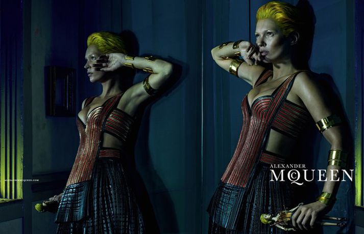 Ofurfyrirsætan Kate Moss er dökk og dularfull í nýrri auglýsingaherferð fyrir tískurisann Alexander McQueen. Ljósmyndarinn Steven Klein myndaði Kate í austurhluta Lundúnaborgar en á myndunum minnir Kate óneitanlega á leikkonuna og Íslandsvinkonuna Tildu Swinton. Þá framleiddi Steven líka tískumynd fyrir herferðina. Sótti hann innblástur í bresku spennumyndina Peeping Tom sem fjallar um raðmorðingja sem drepur konur og tekur síðustu andartök þeirra upp.