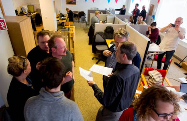 Allir í símanum hjá Samfylkingunni Fanney Birna Jónsdóttir skrifar 31. maí 2014 16:36 Samfylkingin áttar sig á því að þetta er ekki búið fyrr en kjörstaðir loka. Mikil stemmning er í kosningamiðstöð Samfylkingarinnar nú þegar langt er liðið á kjördag. Frambjóðendur og stuðningsmenn slá ekki slöku við og eru að hringja í stuðningsmenn - allir sem einn. Hér að sjá nokkrar myndir sem teknar voru í kosningamiðstöðinni.Dagur sannfærir kjósendur um ágæti Samfylkingarinnar.Eva Baldursdóttir frambjóðandi nælir í atkvæði.Hallgrímur Helgason leggur hönd á plóg fyrir Samfylkinguna.Skúli Helgason niðursokkinn í vinnu.Magnús Már Guðmundsson frambjóðandi er í baráttusæti hjá Samfylkingunni.Efstu sætin leggja á ráðin. Kosningar 2014 fréttir Kosningar 2014 Höfuðborgarsvæðið Mest lesið Hálka á höfuðborgarsvæðinu og Hellisheiði Innlent Ástæða fyrir því að genaumræðan hafi ekki náð mikilli útbreiðslu Innlent Veðurvaktin: Biðja fólk að halda sig heima í kvöld Veður Íslensk stúlka í klóm 764 hvött til sjálfsskaða og ofbeldis Innlent Karlmaður lést í Bláa lóninu Innlent Hlýni á föstudag og snjórinn geti horfið í næstu viku Veður Ráðgjafinn ráðinn tveimur dögum eftir að grennslast var fyrir um málið Innlent Snjómokstur í fullum gangi en verkið er viðamikið Innlent Færeyingar marka leið fyrir risastór neðansjávargöng Erlent Fjórtán drepnir í árásum á meinta fíkniefnasmyglara Erlent Fleiri fréttir Skjálfti 3,2 að stærð í Mýrdalsjökli Snjómokstur í fullum gangi en verkið er viðamikið Íslensk stúlka í klóm 764 hvött til sjálfsskaða og ofbeldis Hálka á höfuðborgarsvæðinu og Hellisheiði Ástæða fyrir því að genaumræðan hafi ekki náð mikilli útbreiðslu Ráðgjafinn ráðinn tveimur dögum eftir að grennslast var fyrir um málið „Alvöru“ jólasveinn gisti á Hótel Rangá Vesturbæjarlaug opnuð enn eina ferðina eftir viðgerðir Verklagi ábótavant og krefur ríkislögreglustjóra skýringa Mæla með því að farþegar reiði sig ekki á tímaáætlanir Snjókoman mikla, ábótavant verklag ríkislögreglustjóra og jólasveinamót Karlmaður lést í Bláa lóninu Biðu í fjóra tíma úti á braut og aðra fjóra við farangursbeltin Kærðu umdeildar framkvæmdir allt of seint Skellt í lás í sundlaugum borgarinnar vegna veðurs Reglur brotnar og þjónusta sem bjóða ætti út Þarf að borga bætur þrátt fyrir breytingar á hlaupahjólinu Hvatt til varúðar vegna snjóflóðahættu á suðvesturhorninu Meiri kvika en í síðasta gosi Eldur í blokk við Ljósheima Flugmaðurinn sem fórst millilenti oft í Reykjavík Halla leiðir krabbameinsráð ráðherra Snjókomumet og umferðaröngþveiti Segir sameiginlegum gildum Norðurlanda ógnað Fjölmargir farþegar fastir í flugvélum á Keflavíkurflugvelli Ungur Miðflokksmaður gengst við rasisma og segir af sér Sturlað ástand og United vettlingar prjónaðir í bílnum Mesta snjódýpt í Reykjavík sem mælst hefur í október Viðbragðsaðilar í mikilli hættu vegna bíla á sumardekkjum Bílar út af veginum á Reykjanesbraut Sjá meira