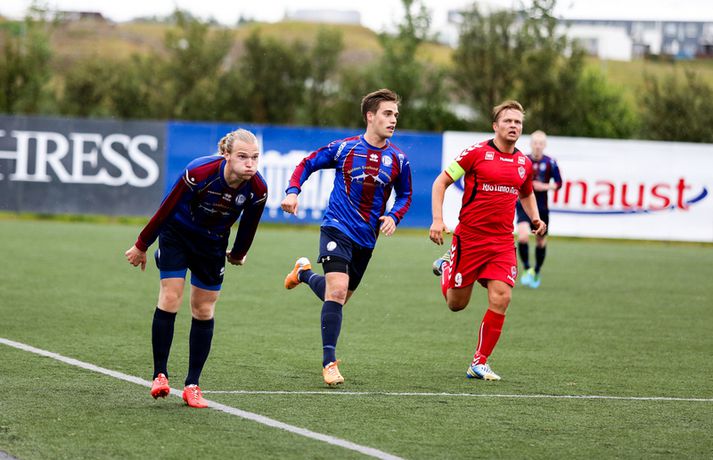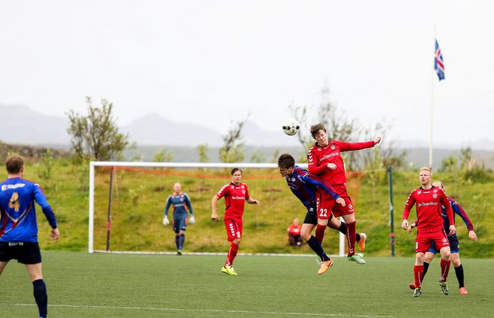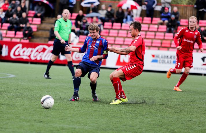 Leiknismenn lentu 2-0 undir en unnu samt | Myndir Óskar Ófeigur Jónsson skrifar 8. ágúst 2014 20:54 Vísir/Arnþór Leiknir úr Reykjavík steig skref nær Pepsi-deild karla í kvöld eftir 3-2 endurkomusigur á Haukum á Ásvöllum en Leiknir lenti 2-0 undir í upphafi leiksins. Arnþór Birkisson, ljósmyndari Vísis og Fréttablaðsins, leit við á Ásvöllum í kvöld og náði þessum myndum hér fyrir ofan. Leiknisliðið hefur þar með náð 36 stigum á toppi 1.deildar og hefur nú 11 stiga forskot á liðið í þriðja sætinu þegar aðeins sjö umferðir eru eftir. Leiknismenn hafa nú sex af síðustu sjö leikjum sínum og ekki tapað deildarleik síðan 22. júní. Það er jafnframt eina tap liðsins í fyrstu fimmtán umferðunum og sigrarnir eru orðnir ellefu. Haukar voru búnir að vinna tvo síðustu leiki sína með markatölunni 9-1 og þeir áttu draumabyrjun þegar Hilmar Trausti Arnarsson og Brynjar Benediktsson komu liðinu í 2-0 á fyrstu ellefu mínútum leiksins. Það tók Leiknismenn aðeins sextán mínútur og snúa við blaðinu og breyta stöðunni úr 2-0 í 2-3. Mörkin skoruðu þeir Vigfús Arnar Jósepsson (17. mínúta), Ólafur Hrannar Kristjánsson (28. mínúta) og Kristján Páll Jónsson (33. mínúta). Upplýsingar um markaskorara eru fengar frá úrslit.net. Íslenski boltinn Pepsi Max-deild karla Tengdar fréttir Hjörtur með mikilvæg mörk fyrir Skagamenn í kvöld Hjörtur Júlíus Hjartarson er búinn að finna skotskóna á ný og hann sá til þess að Skagamönnum lönduðu öllum þremur stigunum í kvöld eftir 3-1 heimasigur á hans gömlu félögum í Þrótti. Hjörtur Júlíus skoraði tvö af mörkum Skagamanna sem lentu undir snemma leiks. 8. ágúst 2014 21:09 Mest lesið „Rokk og ról“ hjá Frey í villta vestrinu Fótbolti Sjáðu atvikið: Hágrátandi Hakimi frá í nokkrar vikur Fótbolti Óstöðvandi Osimhen, magurt hjá Mourinho og Bilbao brenndir Fótbolti Böl Börsunga í Belgíu Fótbolti Uppgjörið: KR - Grindavík 68-85 | Gestirnir á toppinn Körfubolti „Leyfðum þremur leikmönnum að ganga frá okkur“ Sport Spilaði meira en síðustu tvo mánuði til samans Enski boltinn Magdeburg skoraði 45 en lærisveinar Guðjóns Vals úr leik Handbolti Nik fær Lindu Líf til Kristianstad Fótbolti Valskonur niðurlægðu Íslandsmeistarana Körfubolti Fleiri fréttir „Rokk og ról“ hjá Frey í villta vestrinu Sjáðu atvikið: Hágrátandi Hakimi frá í nokkrar vikur Óstöðvandi Osimhen, magurt hjá Mourinho og Bilbao brenndir Böl Börsunga í Belgíu Foden í stuði gegn Dortmund Spilaði meira en síðustu tvo mánuði til samans Nik fær Lindu Líf til Kristianstad Sandra María skoraði í svekkjandi leik Emelía með þrennu gegn FCK Óvænt úrslit í Meistaradeildinni „Mér finnst þetta ekki leiðinlegur fótbolti“ Davíð Smári tekur við Njarðvík Jeffs tekur við Breiðabliki Dældi fyrri afrekum inn á Instagram eftir vonbrigðin Valdi Isak en ekki Gyökeres í fyrsta landsliðshópinn sinn Leiðir Breiðabliks og Damir skilja Mál Alberts truflar landsliðið ekki Stuðningsmenn Bröndby enn á ný í vandræðum Vonar að Jóhann og Hörður gefi jafn mikið af sér og Aron Orri Steinn lengra frá því að ná þessum leikjum en þeim í síðasta glugga Hópurinn fyrir lokaleikina: Hörður og Jóhann snúa aftur Svona var blaðamannafundur Arnars Rooney að kenna að Liverpool er komið á sigurbrautina á ný? Ánægð með að mæta Íslandi „Ég myndi ekki óska neinum þess að lenda í þessu“ Fékk faðmlag frá konu Diogo Jota í miðju maraþoni Arnar Gunnlaugsson las yfir vælandi fýlupúkum hjá Real Madrid Sjáðu sigurmark Liverpool á móti Real Madrid og mörkin hjá Arsenal í Prag „Við viljum koma Haukum á fótboltakortið“ Ógnaði leikmanni Tottenham með byssu út á götu Sjá meira